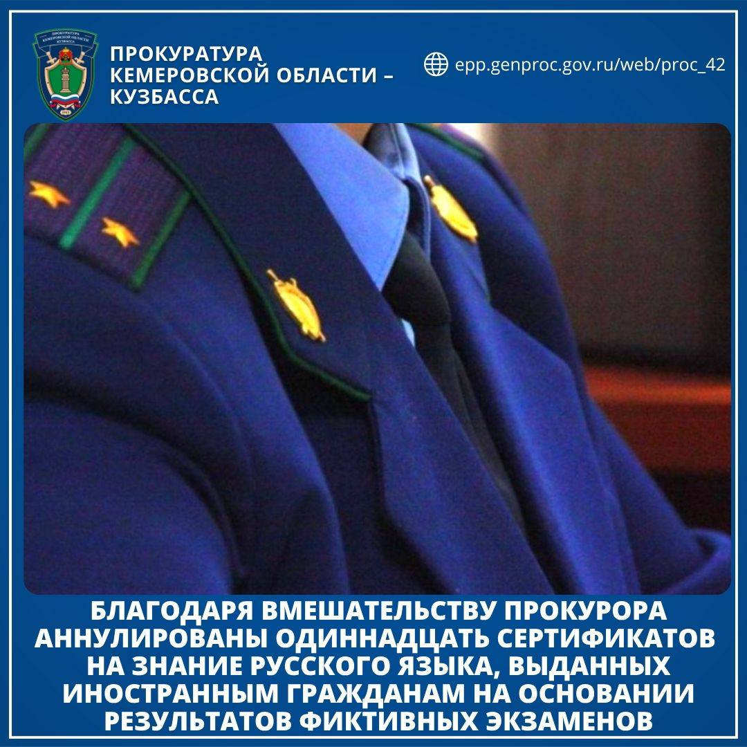 Благодаря вмешательству прокурора аннулированы одиннадцать сертификатов на знание русского языка, выданных иностранным гражданам на основании результатов фиктивных экзаменов