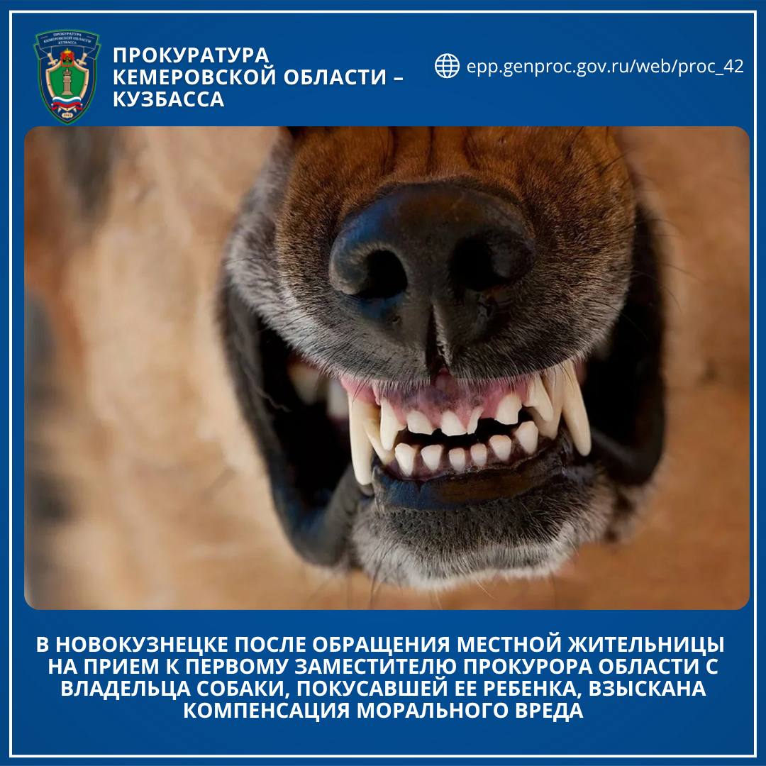 В Новокузнецке после обращения местной жительницы на прием к первому заместителю прокурора области с владельца собаки, покусавшей ее ребенка, взыскана компенсация морального вреда