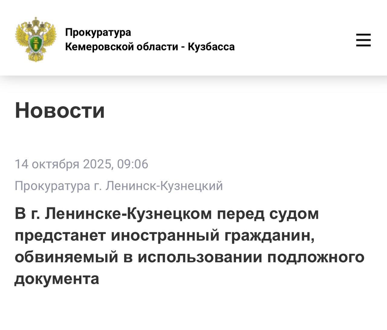 В г. Ленинске-Кузнецком перед судом предстанет иностранный гражданин, обвиняемый в использовании подложного документа