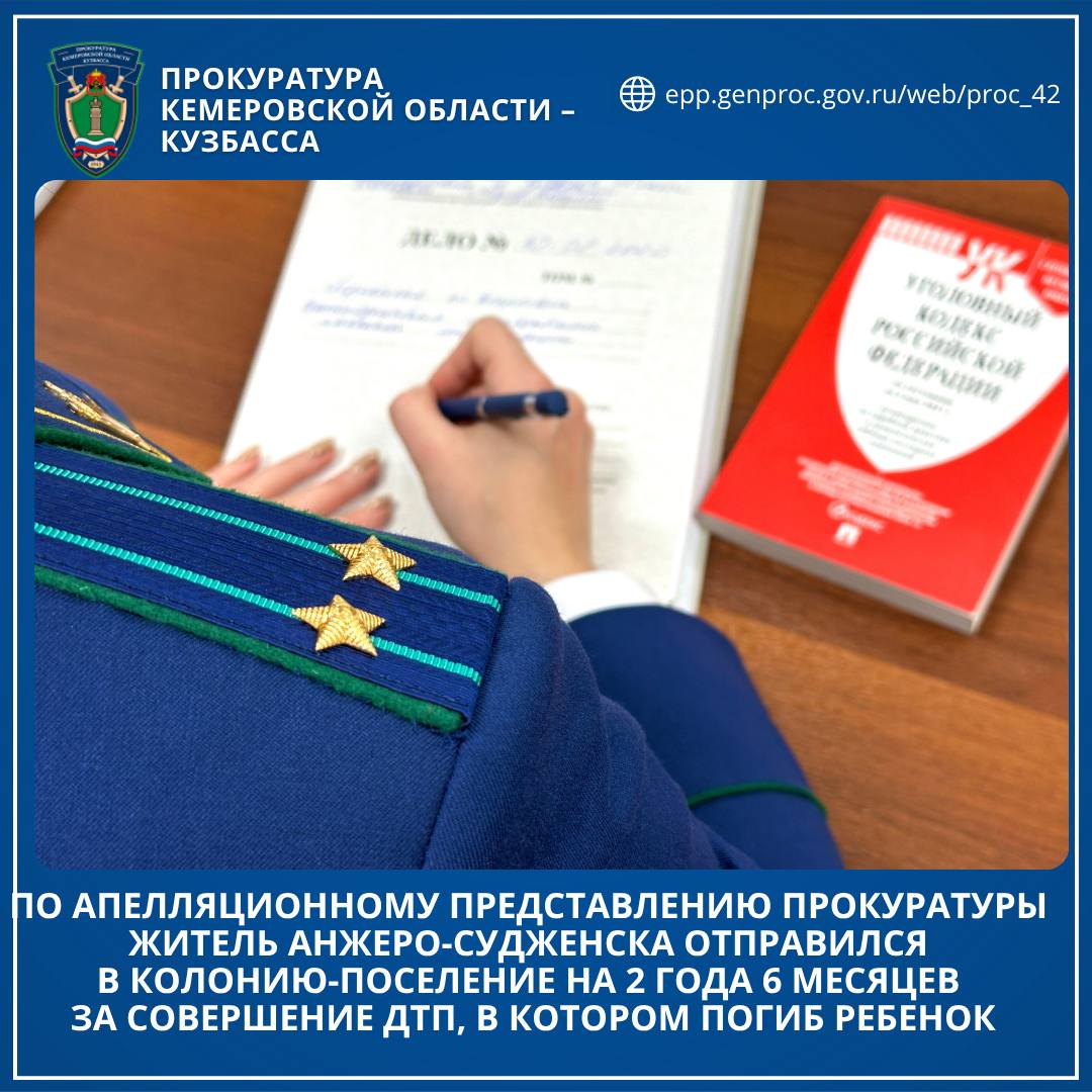 По апелляционному представлению прокуратуры житель Анжеро-Судженска отправился в колонию-поселение на 2 года 6 месяцев за совершение ДТП, в котором погиб ребенок