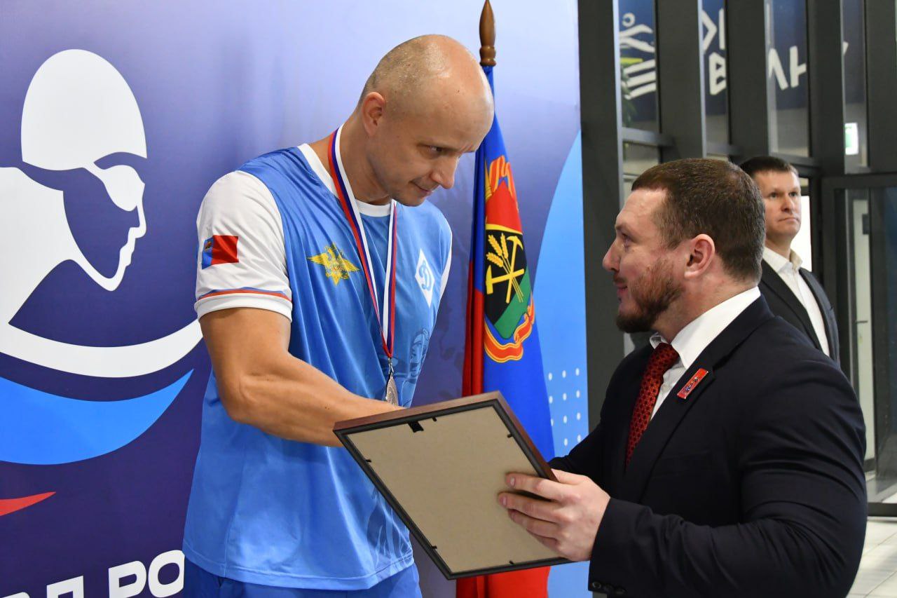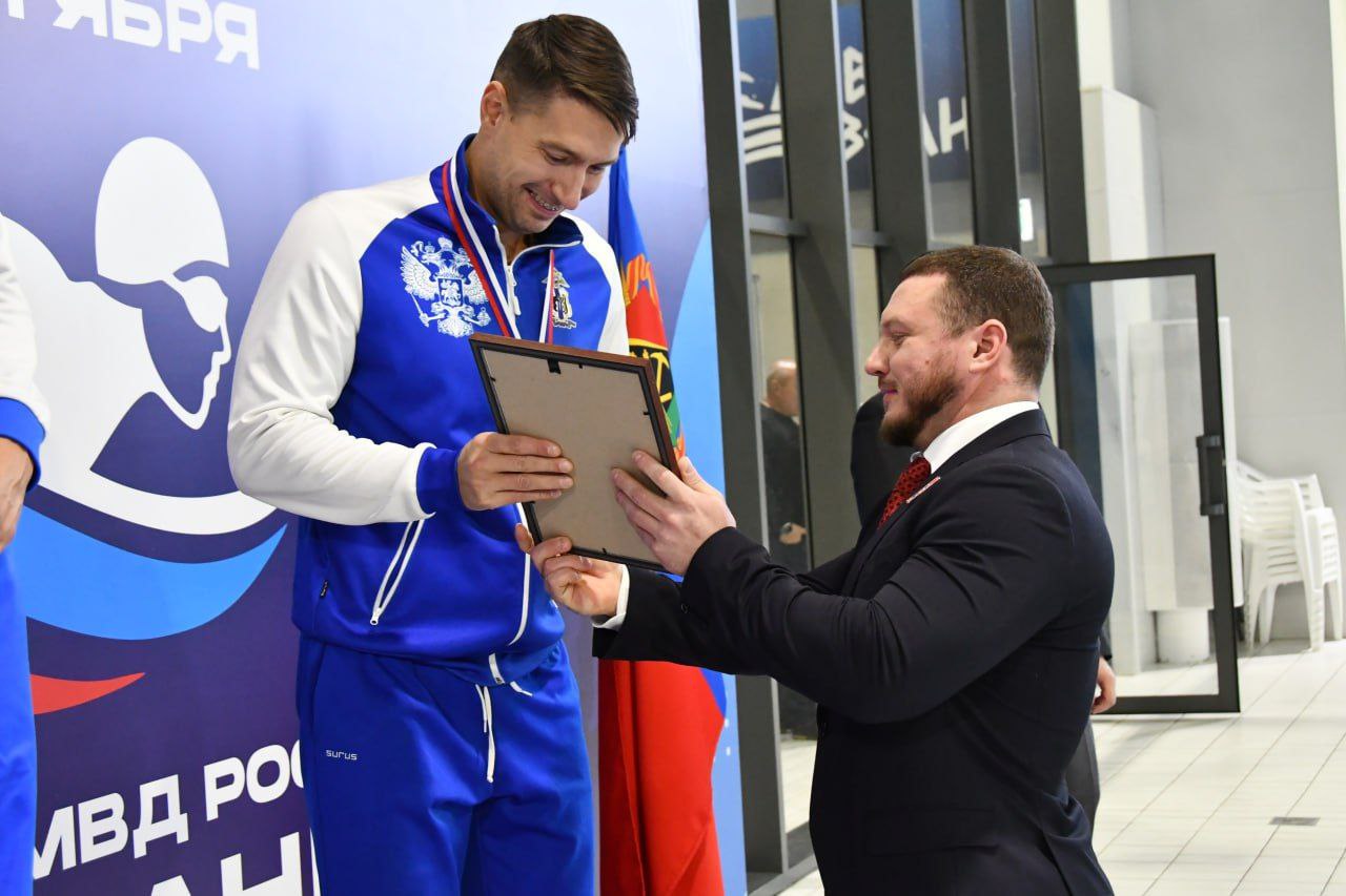 По поручению начальника Главного управления МВД России по Кемеровской области – Кузбассу генерал-лейтенанта полиции Геннадия Корниенко его заместитель генерал-майор полиции Виктор Вологин поздравил победителей и призеров. Также в торжественной церемонии награждения приняли участие заместитель председателя Общественного совета при областном полицейском Главке Роман Бучин и заместитель министра физической культуры и спорта Кузбасса Вадим Ратушный. Они вручили призерам соревнований дипломы и ценные подарки.