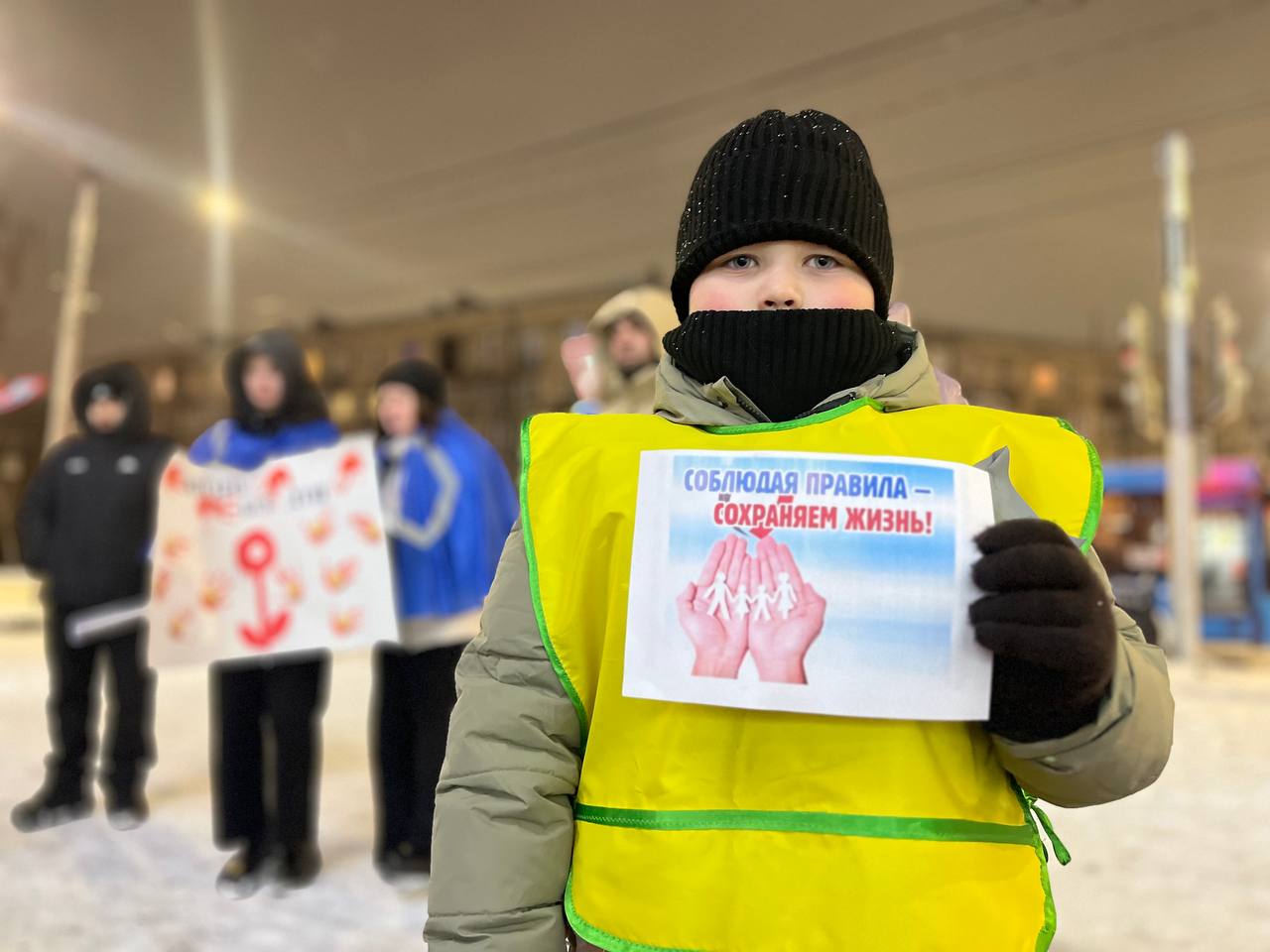 «Не обрывать линию жизни, быть внимательными на дорогах» – об этом была танцевальная композиция. В руках у детей – маленькие фонарики, огоньки которых символизируют жизнь. Взрослые встали с плакатами, на которых – призывы ко всем участникам дорожного движения о соблюдении правил безопасности.