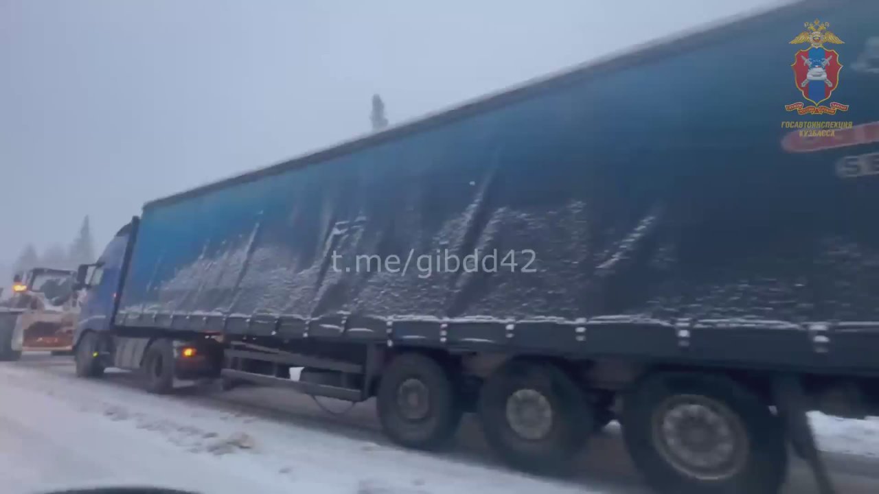 На автодороге «Кузедеево - Мундыбаш - Таштагол» инспекторы обратили внимание на грузовой автомобиль, который в сложных погодных условиях не может заехать в гору.