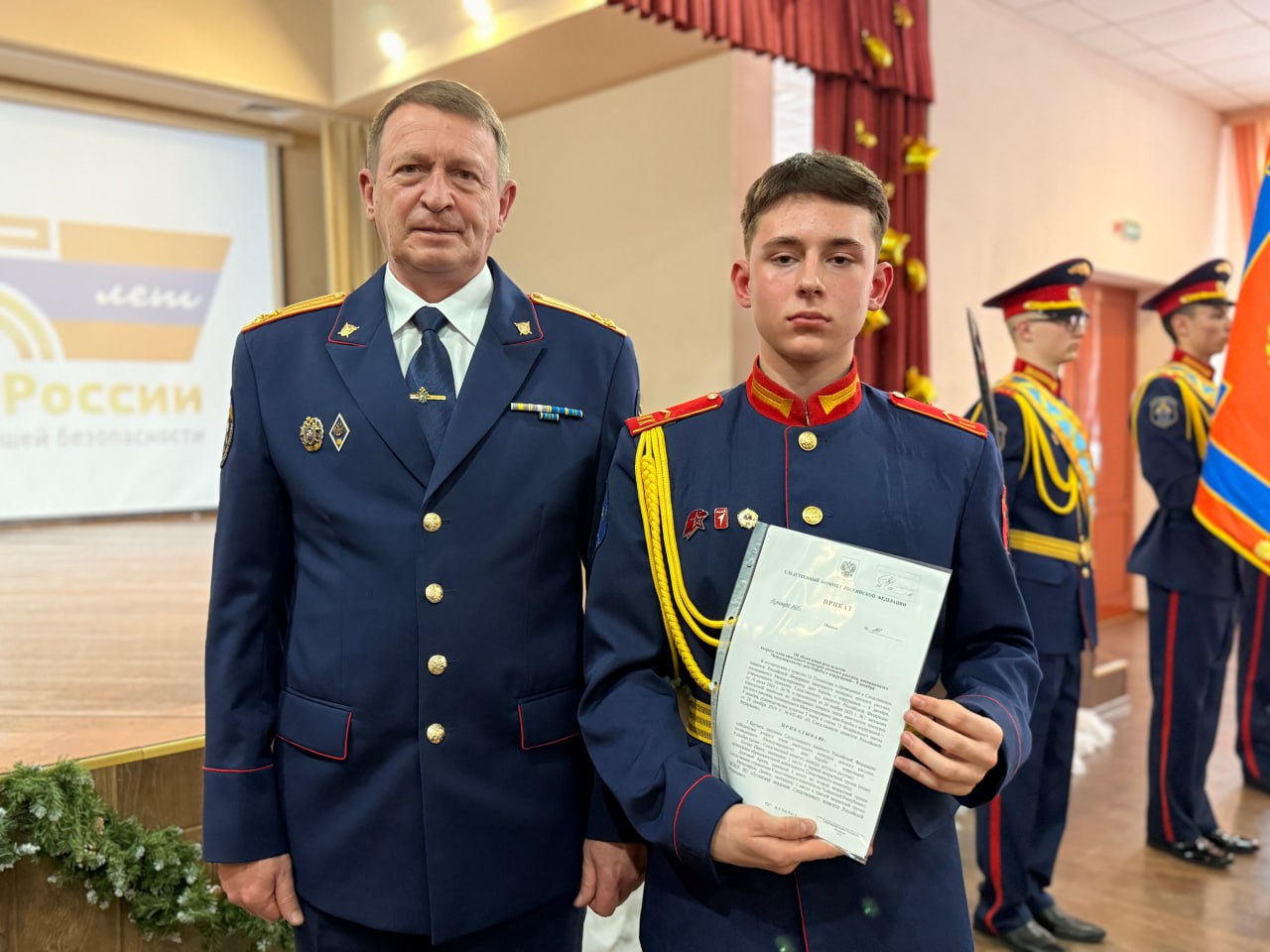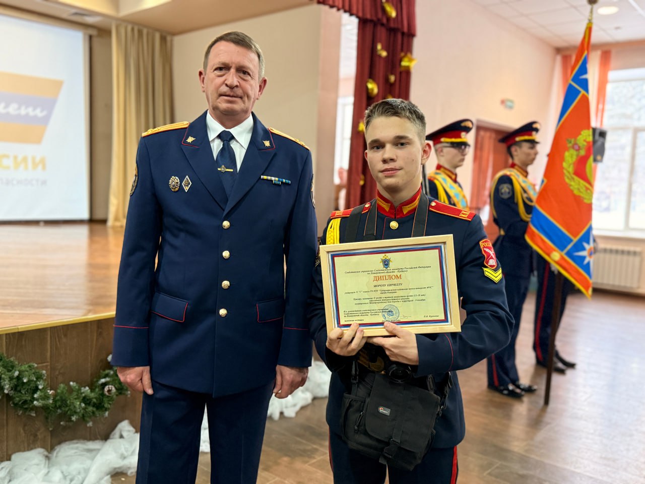 Сотрудники следственного управления СК России по Кемеровской области – Кузбассу приняли участие в торжественной линейке в Губернаторской кадетской школе-интернате МЧС. Мероприятие, состоявшееся 25 декабря 2025 года, было посвящено завершению первого учебного полугодия и наступающим новогодним праздникам.