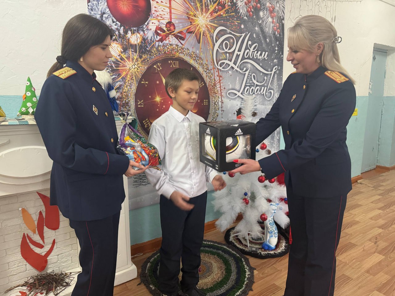 Выбрав на новогодней елке праздничный шар с заветным желанием, она узнала о мечте 10-летнего Матвея Пушилина из села Постниково Ижморского округа. Мальчик мечтал о футбольном мяче для занятий спортом.