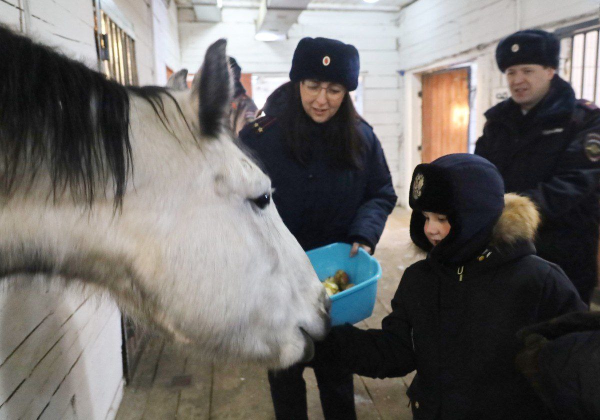 Платона вместе с его мамой пригласили в Центр кинологической службы, где содержатся полицейские лошади и собаки. Маленький гость познакомился со служебными животными, пообщался с лошадьми, погладил и покормил их фруктами. Также Платон попробовал себя в роли наездника, оседлав коня по кличке Бонапарт.