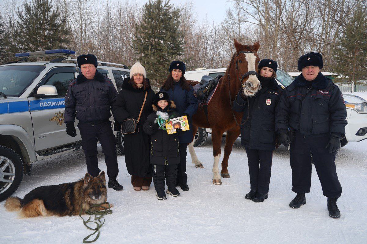 Благодаря проекту «Елка желаний» сотрудники УМВД России по г. Кемерово узнали о том, что 7-летний первоклассник Платон Лысюк мечтает прокатиться на настоящей полицейской машине. Полицейские решили не только прокатить мальчика, но и познакомить с работой кинологов и кавалеристов.