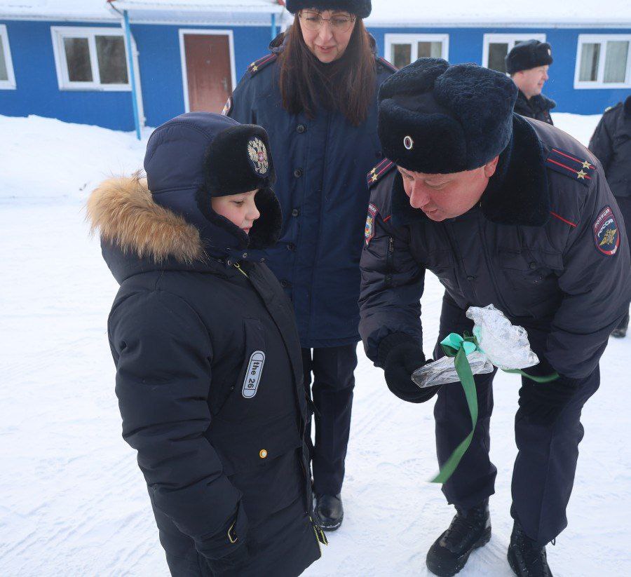 В завершение встречи заместитель начальника отдела УУП и ПДН УМВД России по г. Кемерово подполковник полиции Наталья Миллер вручила Платону сладкий подарок, а командир отдельного батальона патрульно-постовой службы УМВД России по г. Кемерово подполковник полиции Дмитрий Кондраев подарил мальчику на счастье настоящую подкову.
