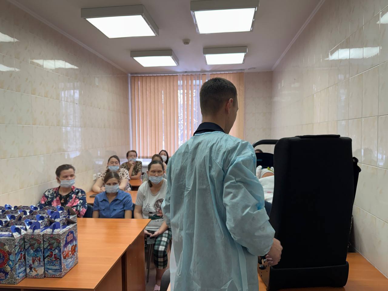 Инспекторы посетили отделение патологии беременности родильного дома Кузбасской областной детской клинической больницы имени Ю.А. Атаманова и вместе с медиками провели тематическое мероприятие для готовящихся стать мамами пациенток.
