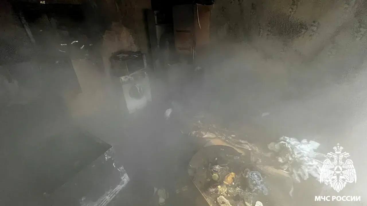 Возгорание на площади 16 м произошло на 3-м этаже. Обгорели потолок и стены, повреждены вещи, бытовая техника и мебель.