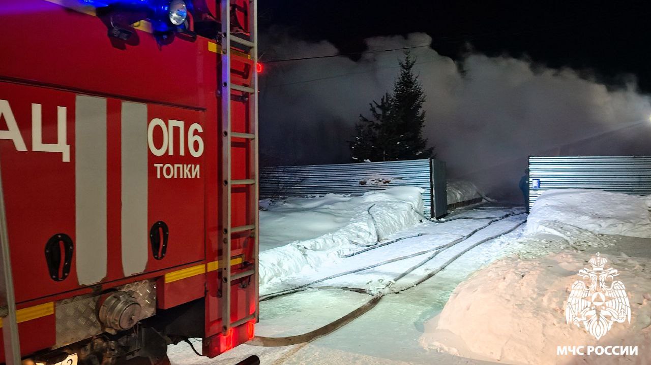 Ранним утром в Топках загорелся жилой дом - пламя охватило крышу и надворные постройки. Громкий сигнал пожарного извещателя разбудил родителей и троих детей. Все незамедлительно покинули жилье.