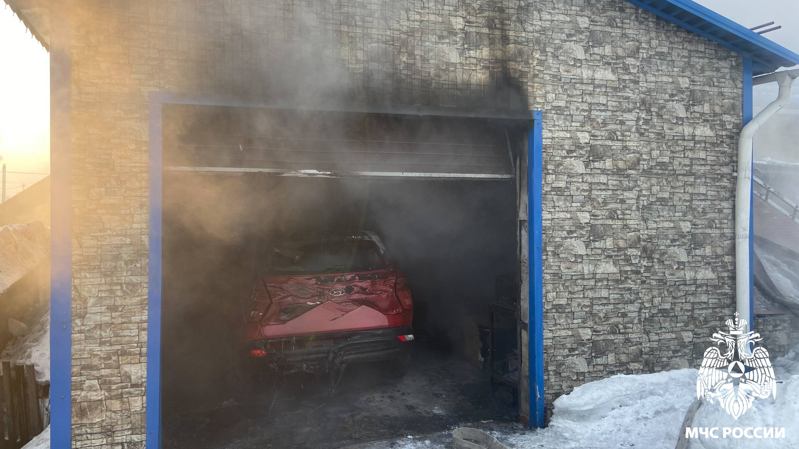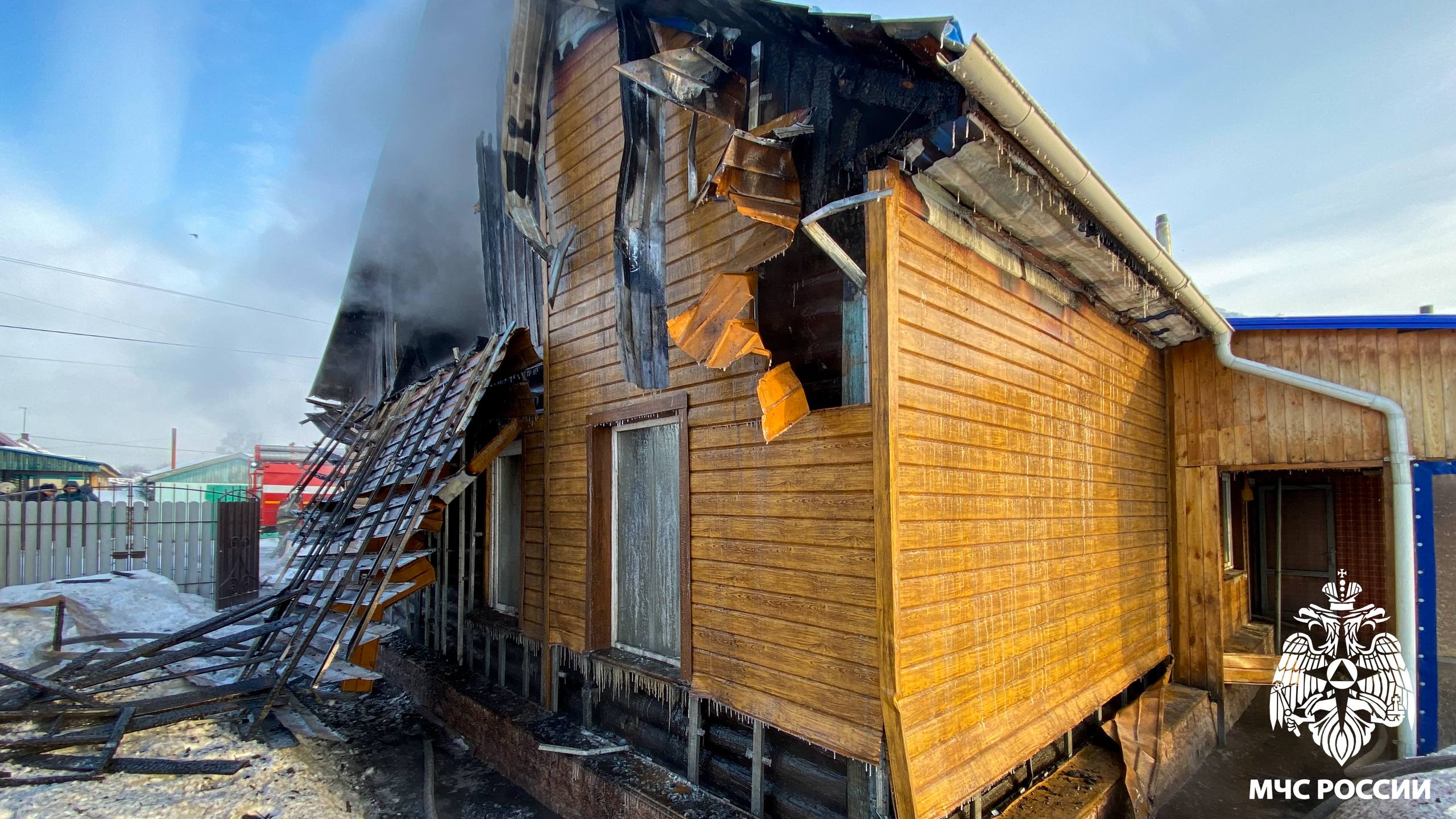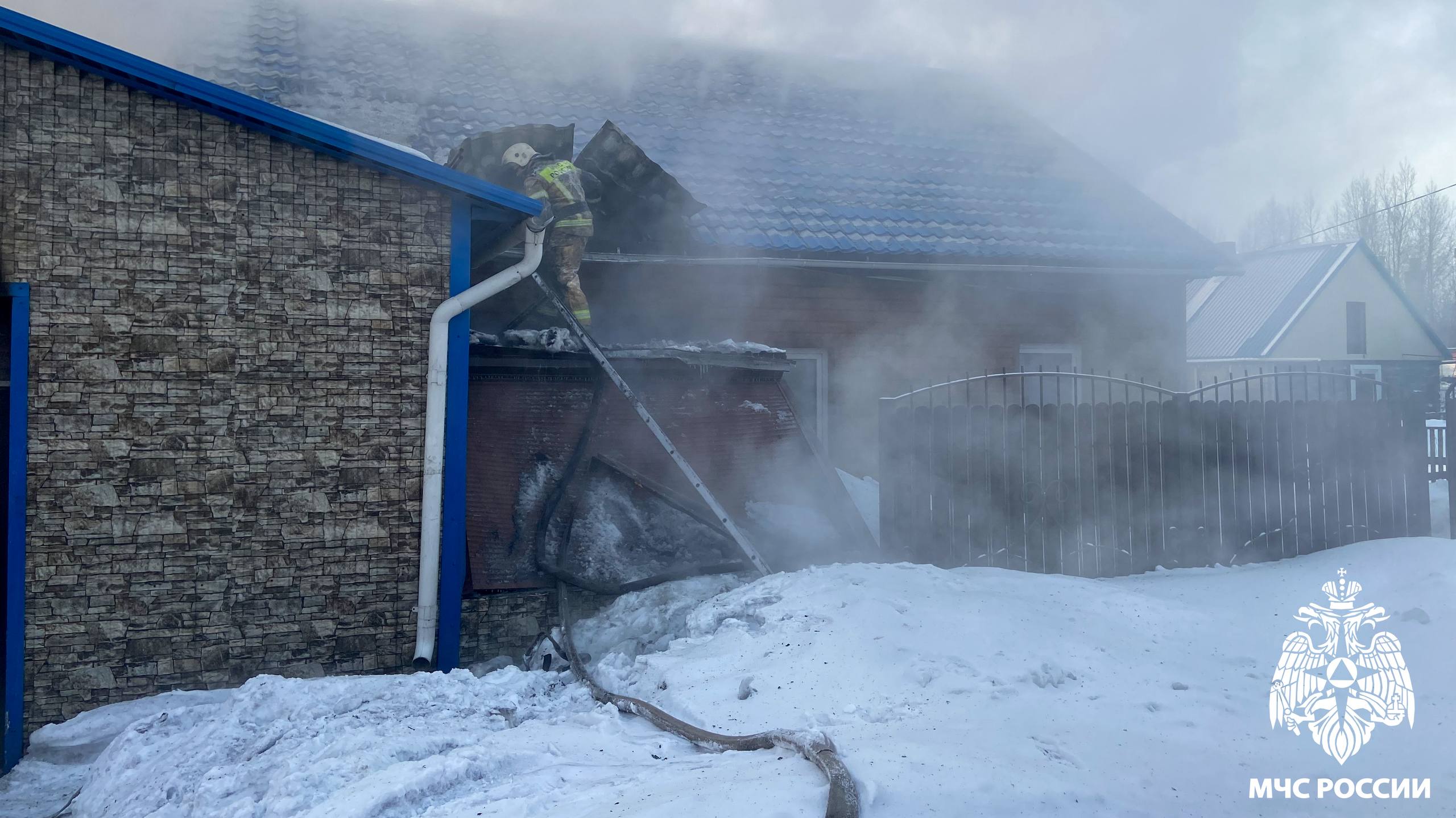 Пожар охватил жилой дом и гараж в Полысаево