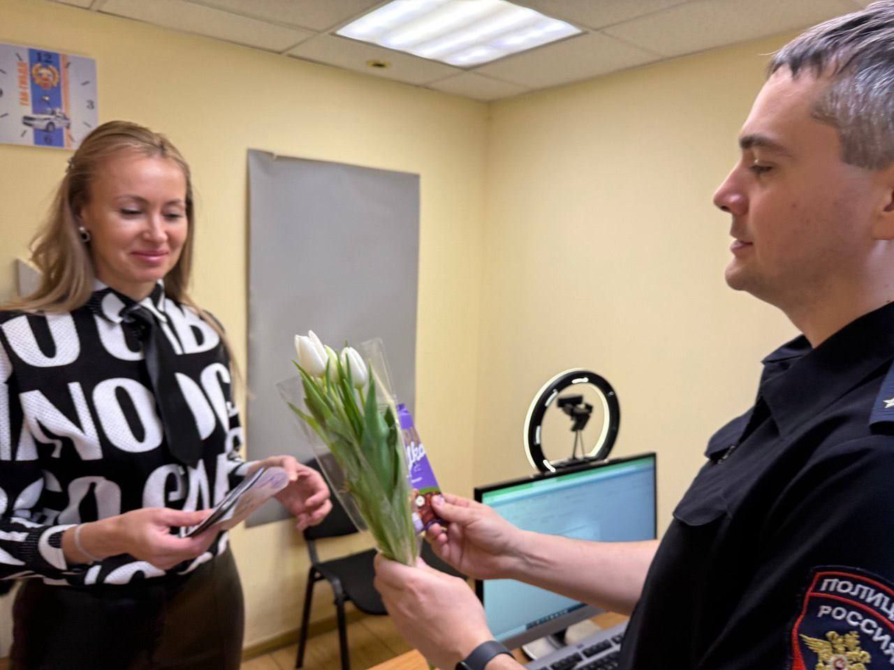 Цветы, подарки и поздравления в честь 8 Марта от Госавтоинспекции продолжаются