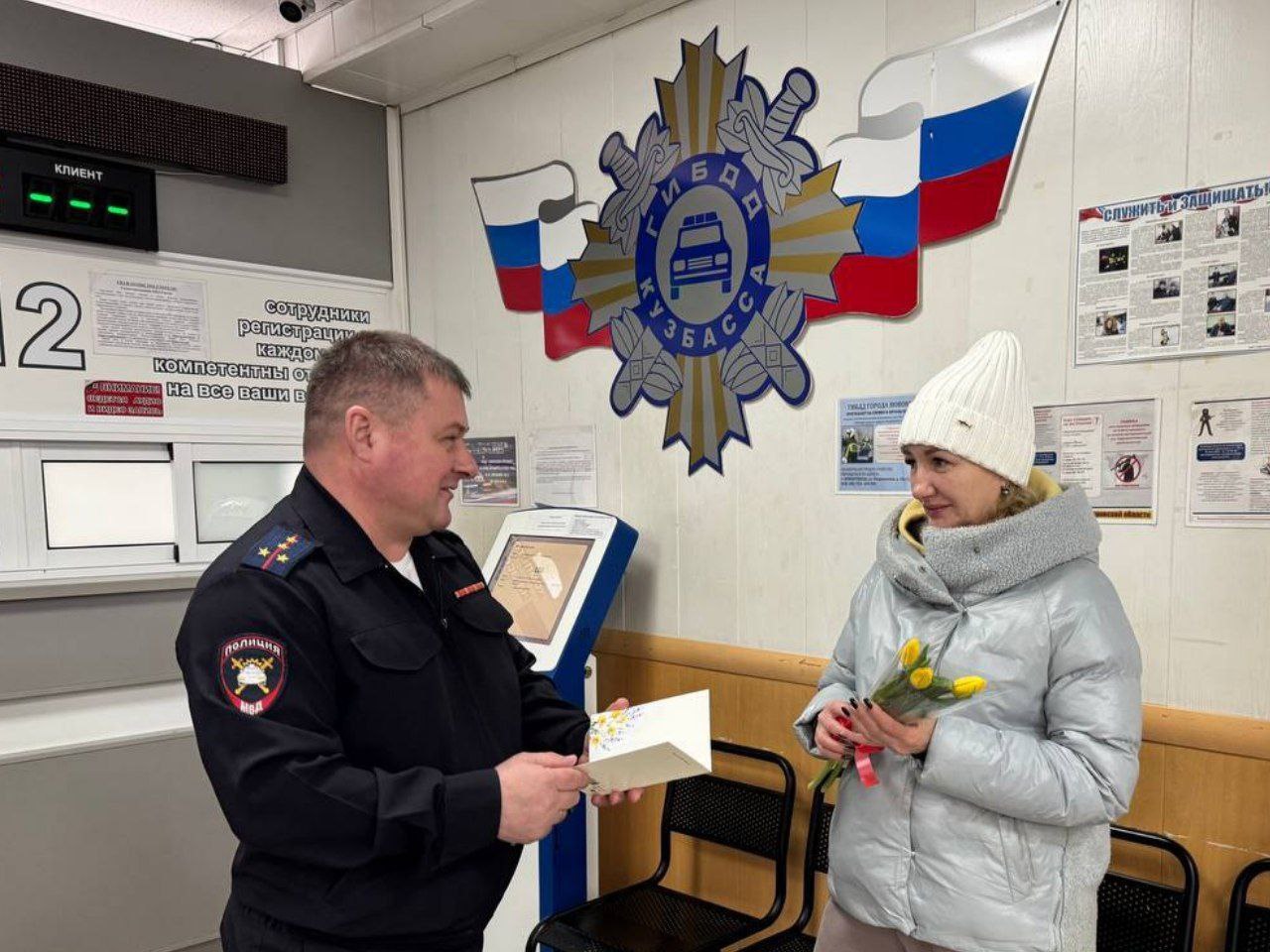 Сегодня комплименты начинающим водителям сделали и сотрудники Госавтоинспекции Новокузнецка. Девушек, которые впервые пришли получать водительское удостоверение, ждал приятный сюрприз – букет весенних тюльпанов и пожелания «быть примерным водителем».