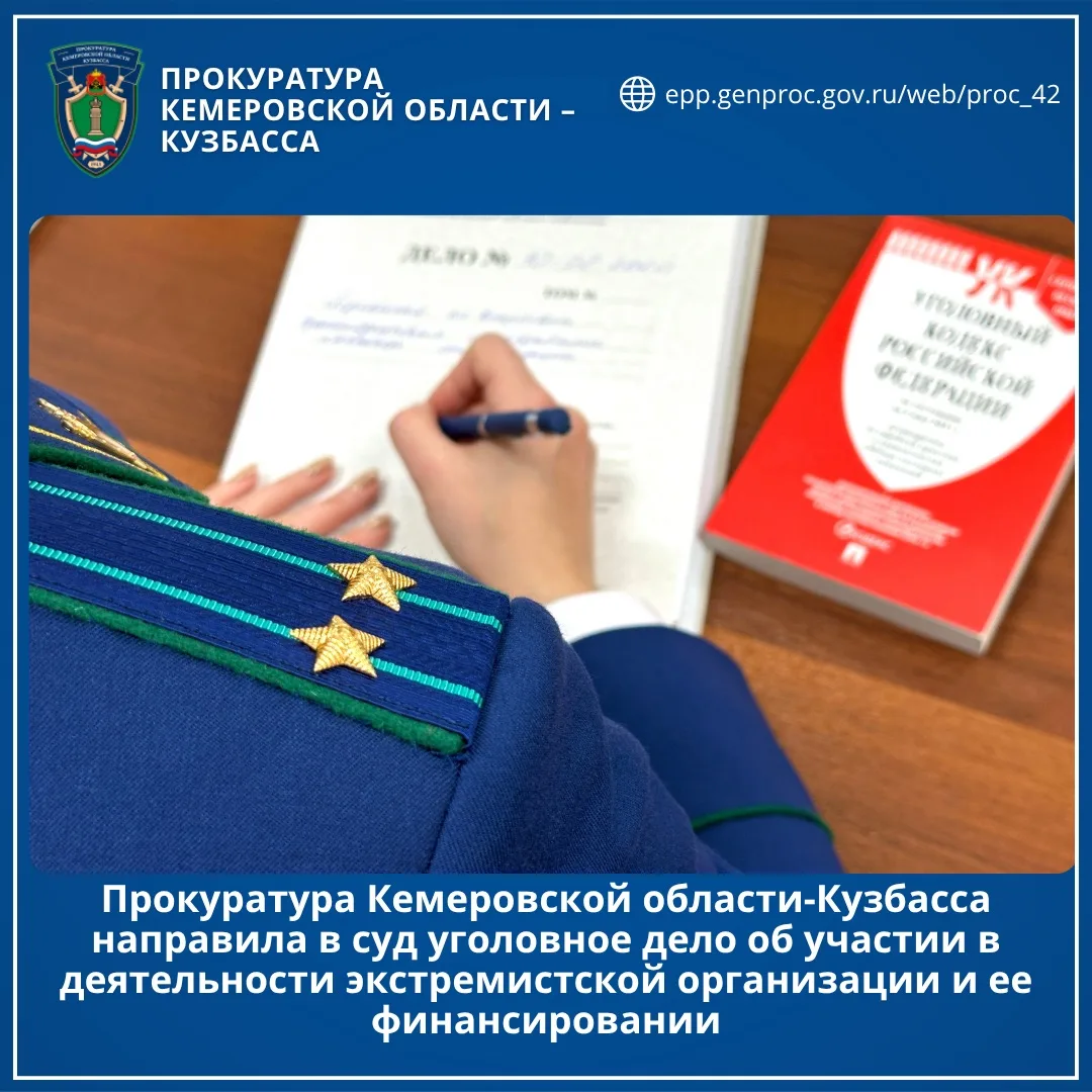Прокуратура Кемеровской области-Кузбасса направила в суд уголовное дело об участии в деятельности экстремистской организации и ее финансировании