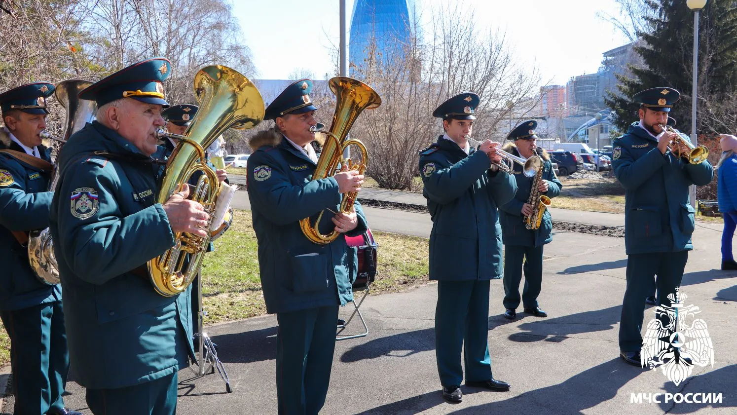 Специалисты ведомства и ветераны отдали дань уважения участникам ликвидации последствий радиационных аварий и катастроф, после чего под аккомпанемент оркестра возложили венки и цветы к монументу.