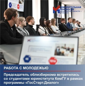Сегодня председатель Избирательной комиссии Кузбасса Светлана Демидова пришла в гости к ребятами из Юридического института КемГУ в рамках программы «ГосСтарт.Диалог».Встреча прошла в дружеской, непринужденной и позитивной обстановке....