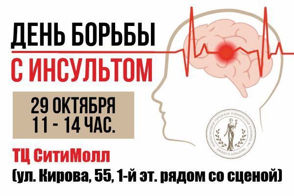 29 октября — Всемирный день борьбы с инсультом. Врачи Первой больницы приглашают горожан пройти необходимое обследование.В программе акции:Анализ крови на сахар и измерение артериального давления (АД).Диагностика эмоционального состояния и...