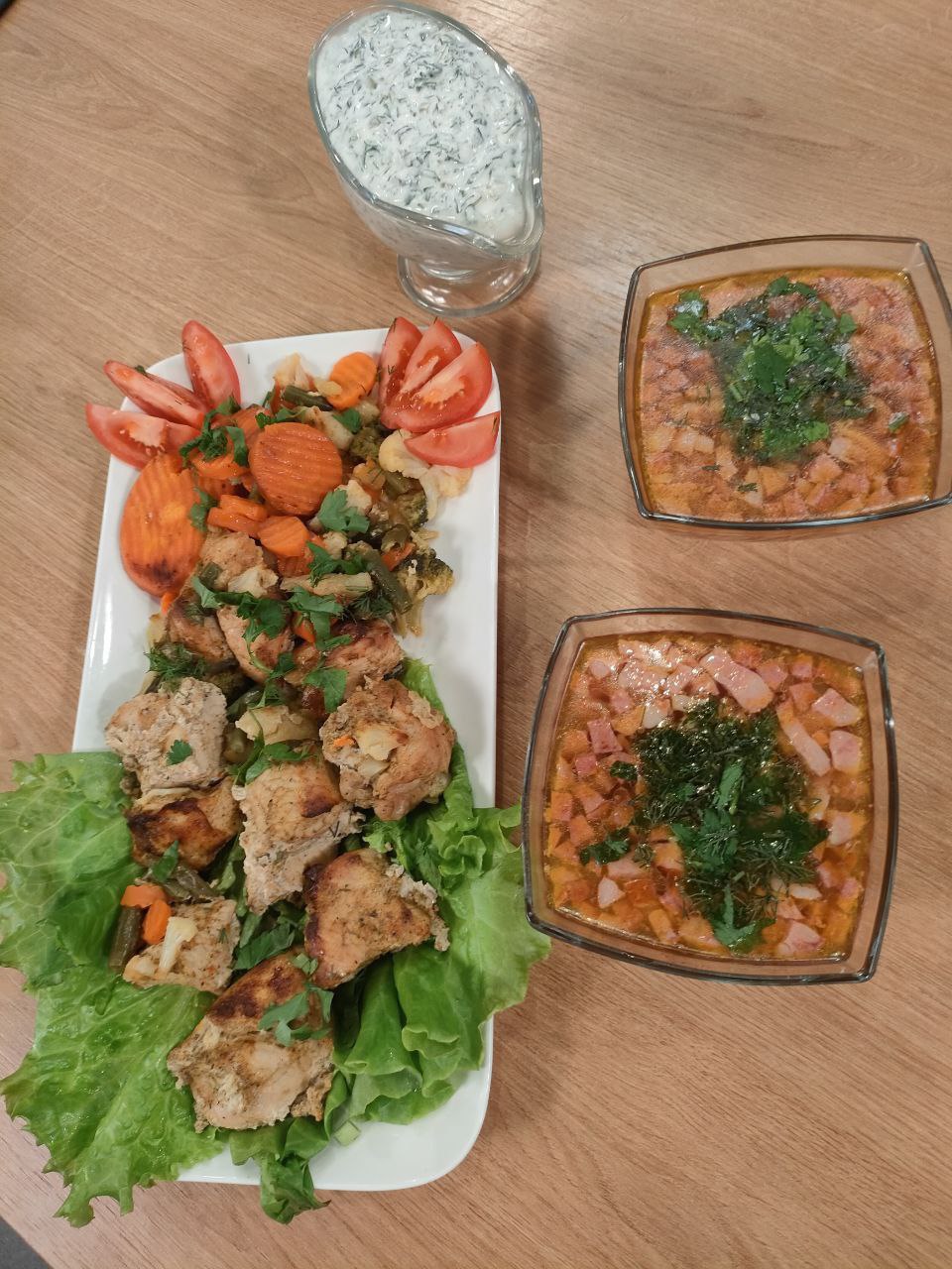 Судите сами: мясо с овощами, суп гороховый с копчёностями и классика — пицца.
