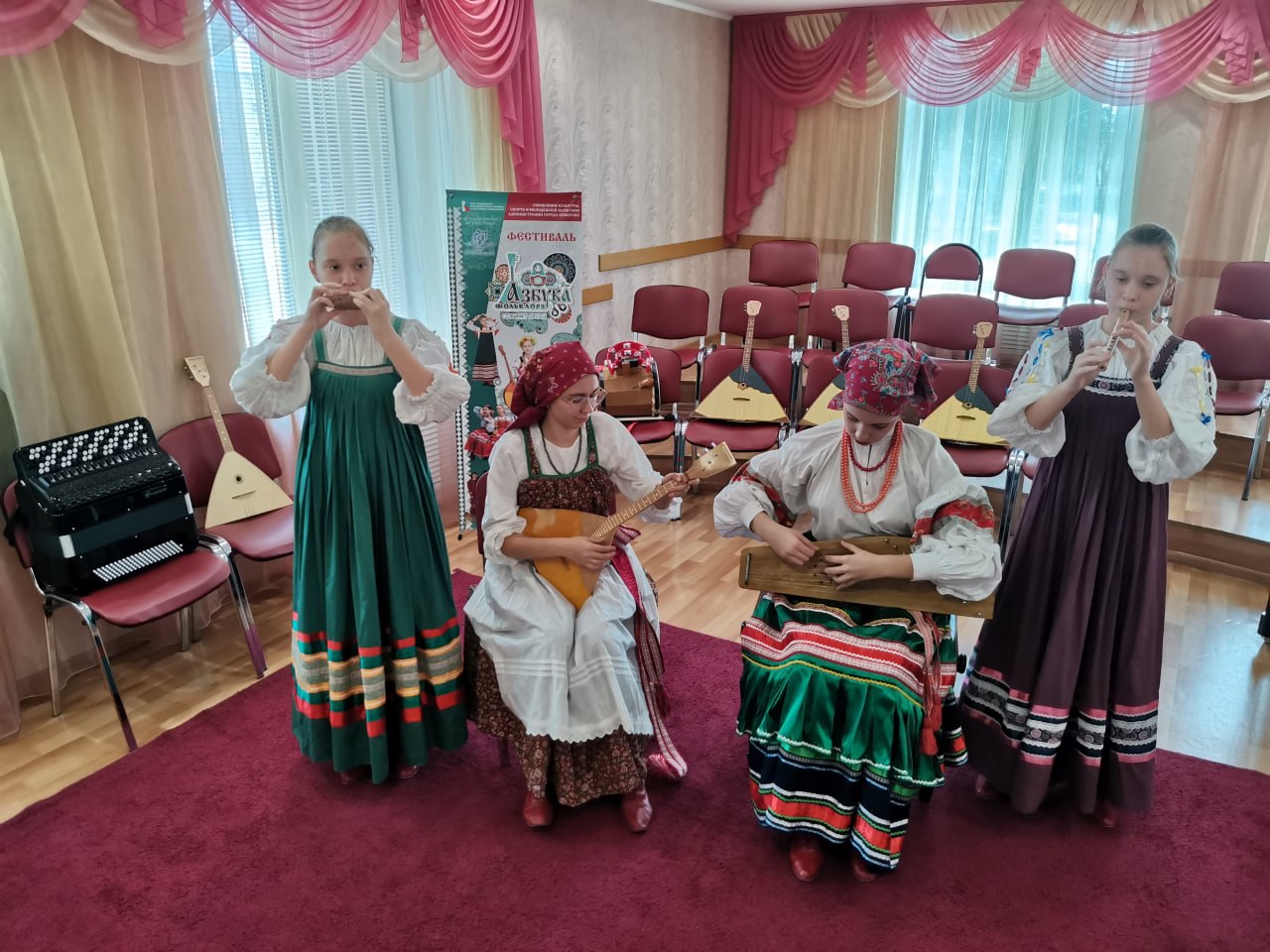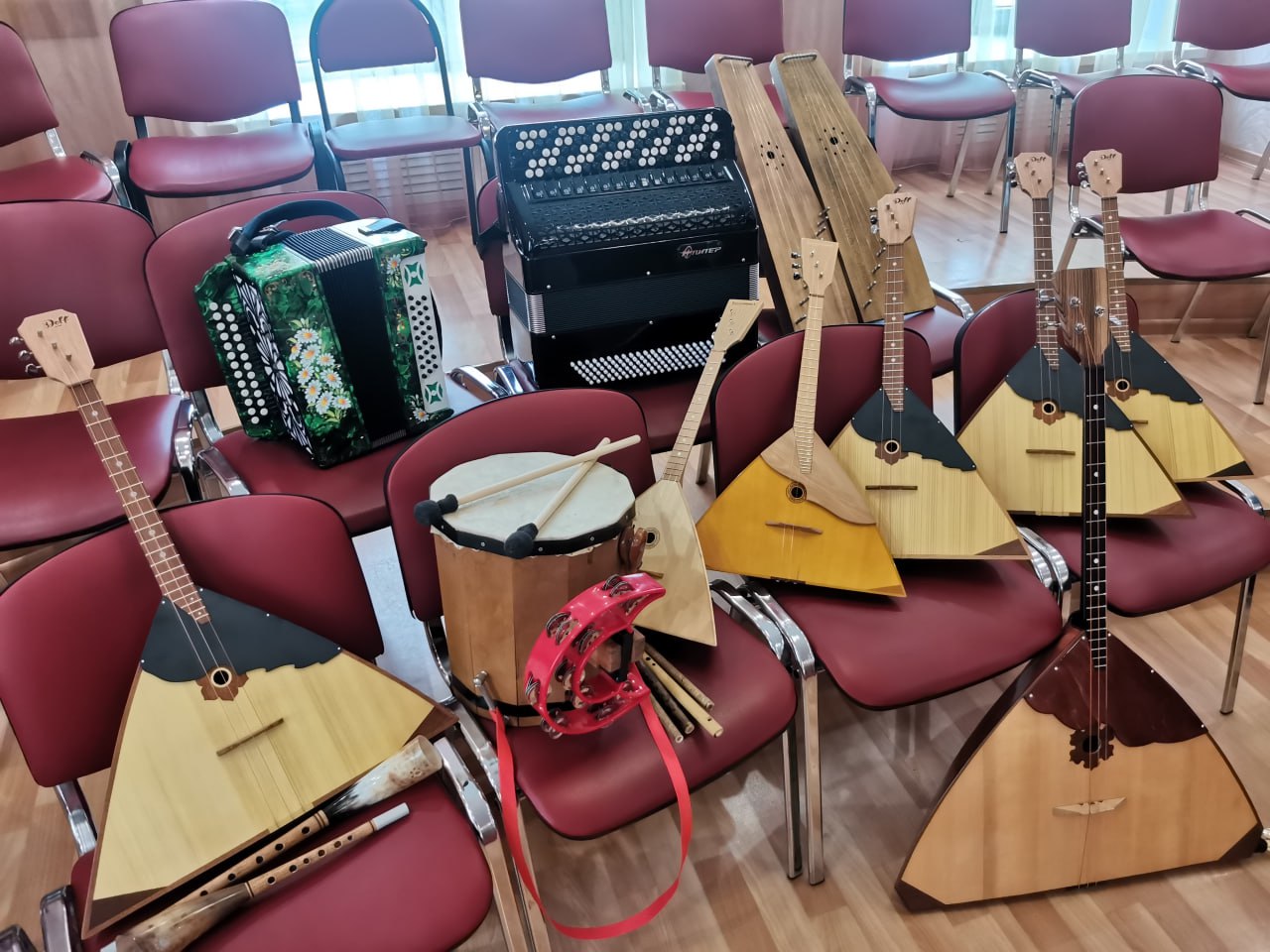Балалайки разных видов, от баса до примы, тульская гармонь, гусли, жалейки, свирели, барабан – их приобрели благодаря поддержке Президентского Фонда культурных инициатив. Уже четвёртый год подряд школа выигрывает в конкурсе грантов – можно сказать традиция, так же, как и проведение фестиваля «Азбука фольклора». В этом году третье событие решили провести на новый лад: кроме фольклорных коллективов привлечь к участию оркестры русских народных инструментов.