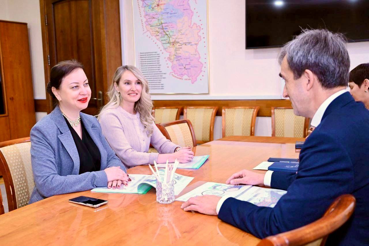 с Губернатором Кузбасса Ильей Середюком, в ходе которой обсудила вопросы исполнения бюджета, а также наградила медалью Федерального казначейства «За усердие и Пользу» Первого заместителя председателя Правительства Кузбасса- Министра финансов Кузбасса Игоря Малахова.