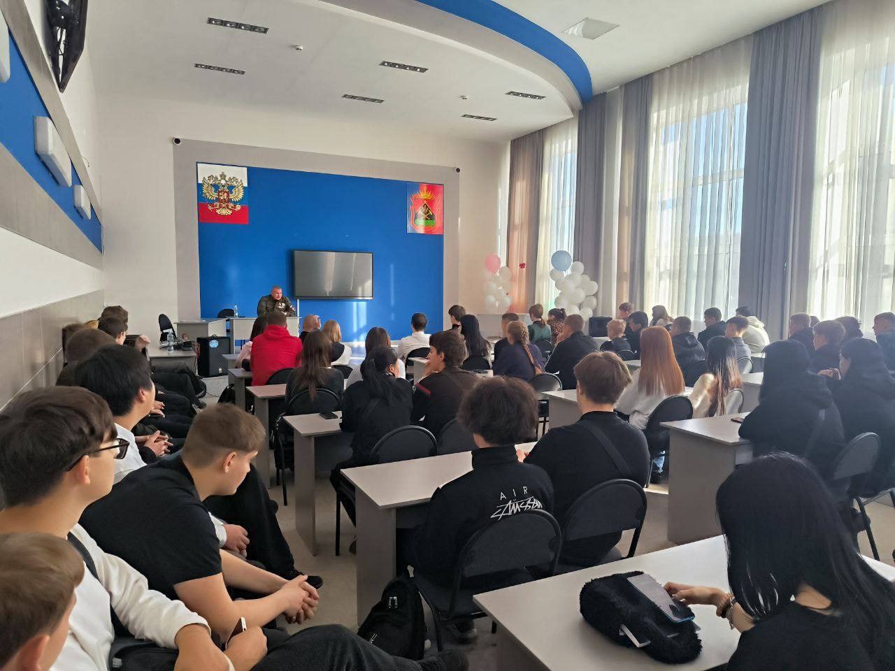 В Мысках первокурсники встретились с ветераном боевых действий, участником программы «СВОи Герои. КуZбасс» Вадимом Шекерой. На уроке мужества с ребятами поговорили о верности присяге и боевой дружбе.