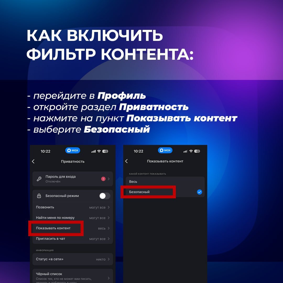 Фильтр контента в MAX — это встроенная функция защиты, которая автоматически скрывает каналы и материалы с возрастными категориями 16+ и 18+