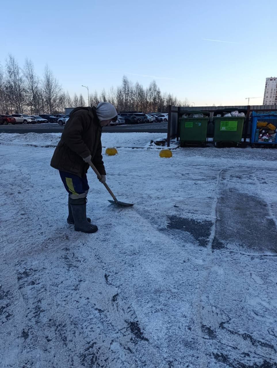 Сегодня в уборке дворов задействованы 1403 дворника и 43 единицы спецтехники - очищают снег на входных группах, пешеходных дорожках и тротуарах.