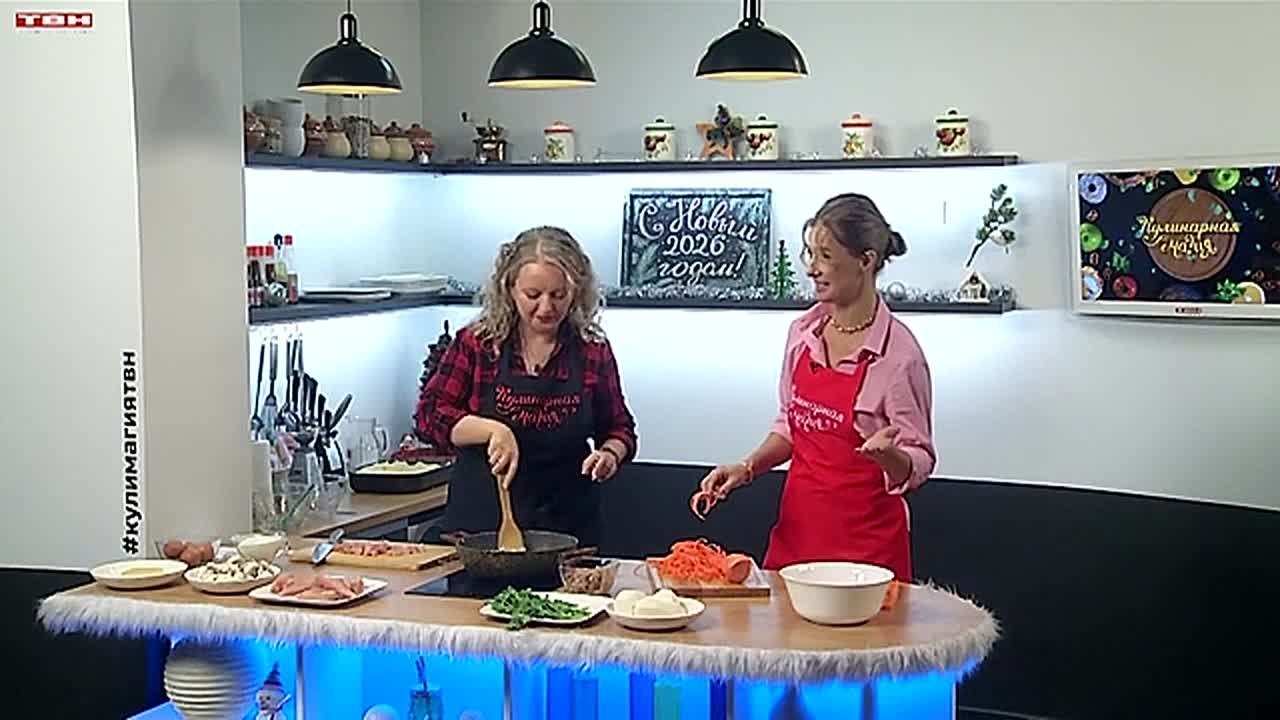 В новом выпуске «Кулинарной магии» будем сочетать фитнес и праздничное застолье. Попробуем решить проблему зимних килограммов и пасмурного настроения. Будем учиться сохранять праздник в душе и красоту в теле. А поможет в этом - фитнес-тренер, кмс по становой тяге Юлия Строгая. Нужен ли разгрузочный день и сколько воды пить в день? Какие упражнения полезно делать во время готовки? Как не перегореть, записавшись на фитнес-тренировки?