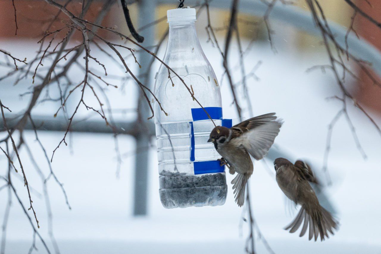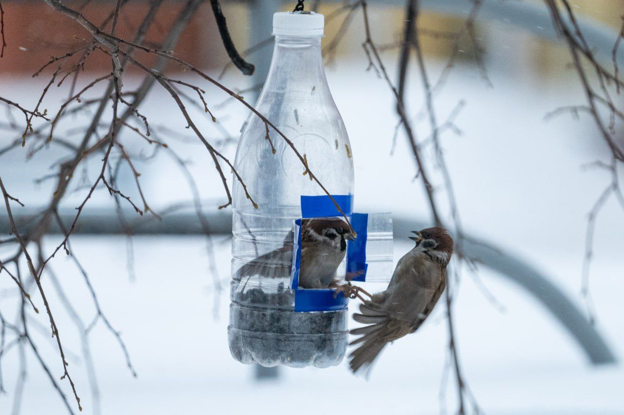 Птичья суета или кто первый на обед: кормушки для пернатых в кемеровских дворах не пустуют