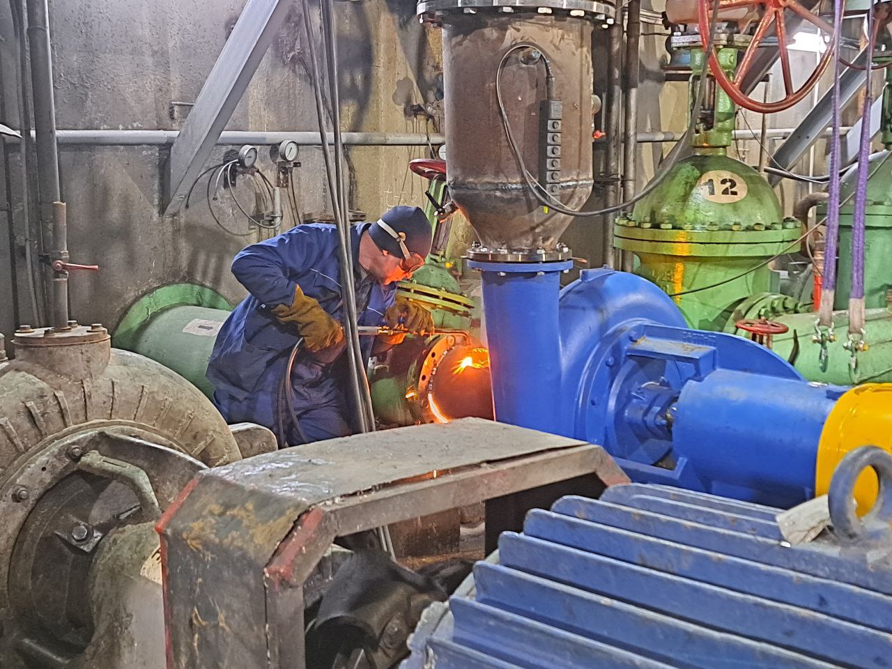 Монтаж нового насоса выполнили рабочие во главе с бригадиром Тереховым Александром Сергеевичем. Они последовательно сделали обвязку насосного агрегата со всасывающим и напорным трубопроводами. Далее установили габаритный электродвигатель на общую раму, произвели его подключение. Финишный этап – заливка фундамента.
