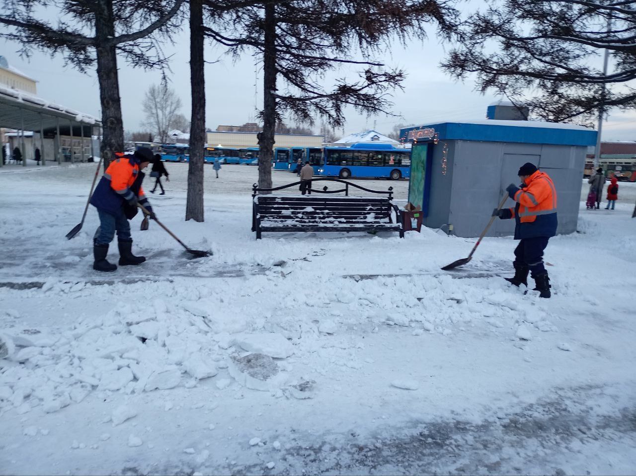 В планах - патрульная очистка дорог и прометание тротуаров во всех районах города, уборка остановочных павильонов, заездных карманов, пешеходных переходов, обработка проезжей части противогололедными материалами. Вывоз снега с ул.Ю.Двужильного, Космическая, Щегловская, проспекта Весенний, бульвара Осенний.