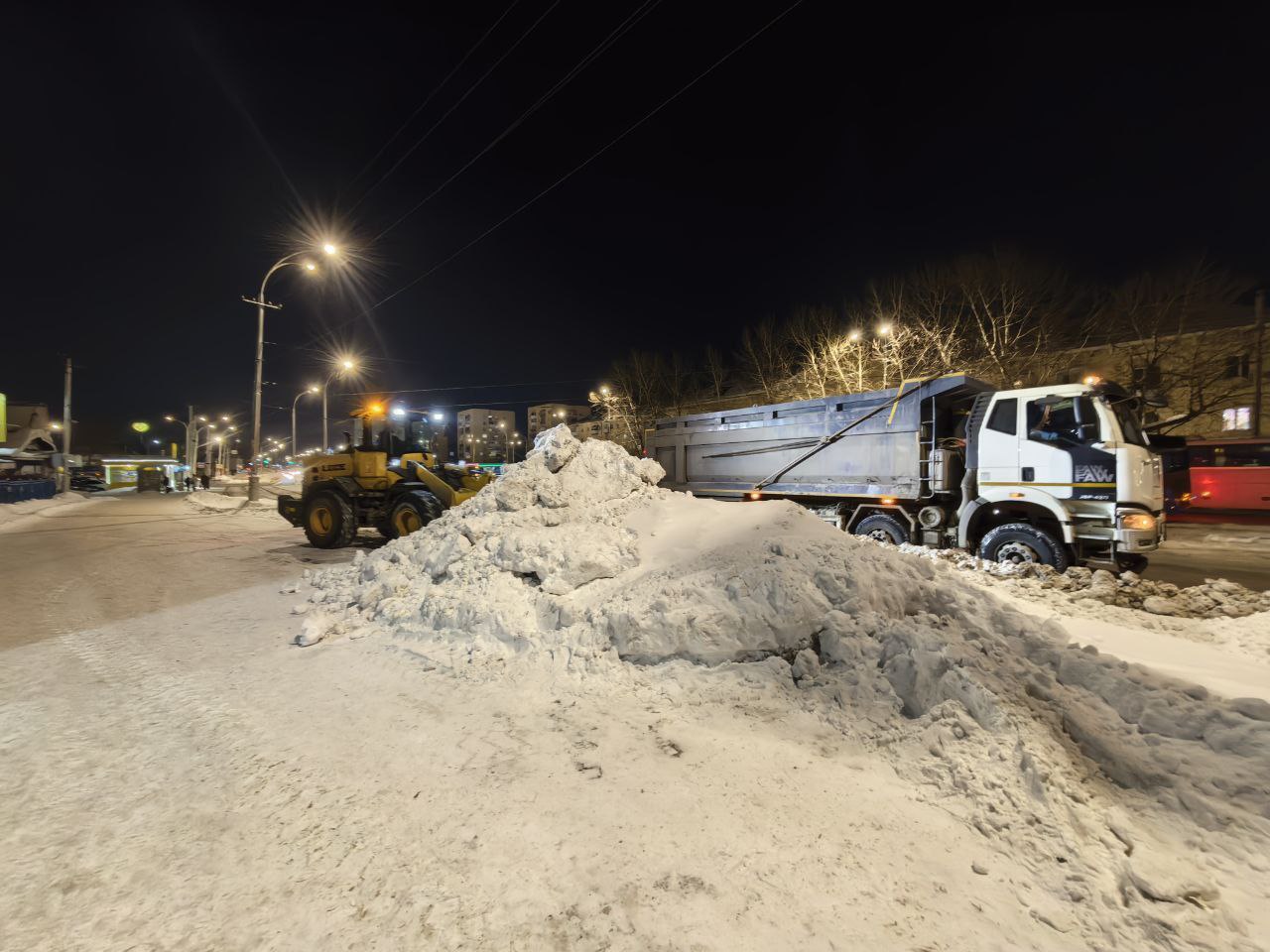 Ночью техника работала на проспектах Ленина, Октябрьский, Шахтёров, Комсомольский, улицах Соборная, Терешковой, в ж.р.Лесная поляна, п. Промышленновский, п. Кедровка, п. Петровка. Вывозили снег с пр. Советский от ул. 50 лет Октября до ул. Мичурина, улиц Орджоникидзе, Дзержинского, проспекта Ленина, пл. Волкова, проспекта Кузнецкий, улиц Волгоградская, Лог Уньга и Новогодняя. Расчищали улицы частного сектора.