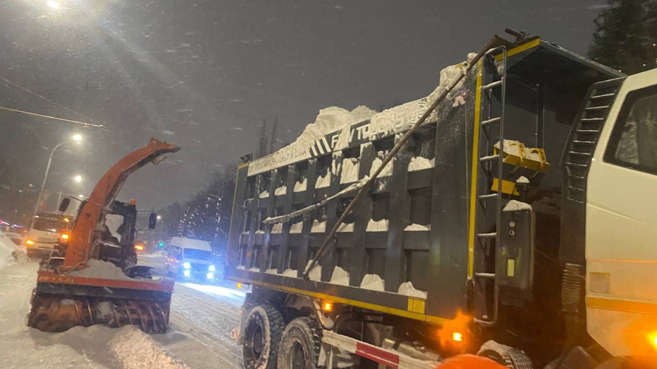 Сегодня на город обрушился сильный снегопад. Дорожная техника и коммунальные службы вышли на уборку.