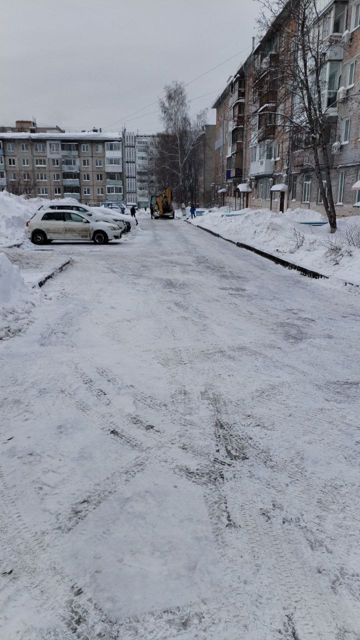 В Рудничном районе расчистили дворовую территорию на пр.Шахтёров, 34. В п. Кедровке работы велись на ул. Новогодняя, 19 и ул.Строительная, 10.