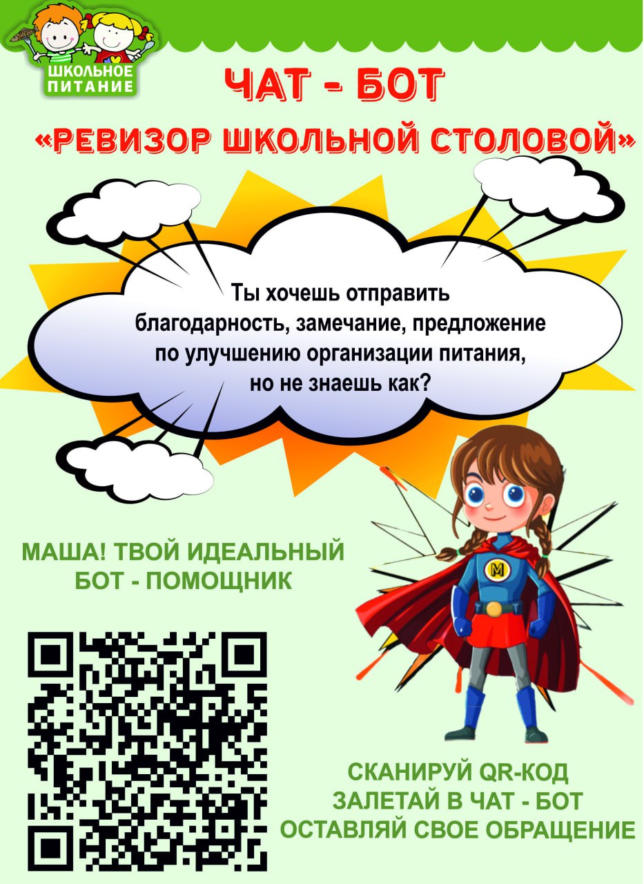 Виртуальный ревизор школьной столовой работает уже чуть более года. Его задача, по словам «Школьного питания», - оперативная обратная связь. Оставить обращение, предложение, благодарность или вопрос дети с помощью QR-кода могут прямо за завтраком или обедом в столовой. Здесь же размещена информация о кулинарных мастер-классах и конкурсах, комплексах питания, карте школьника.
