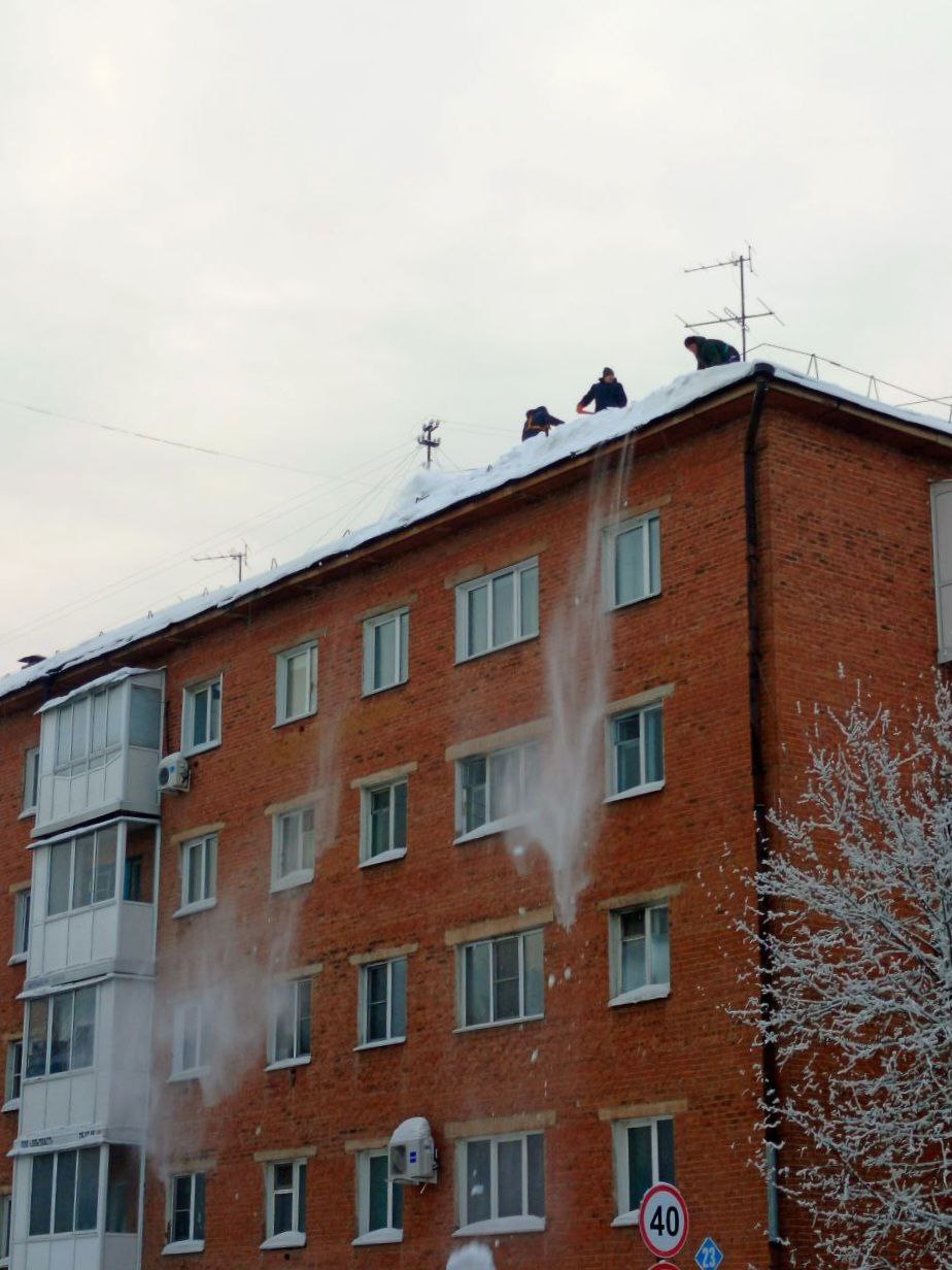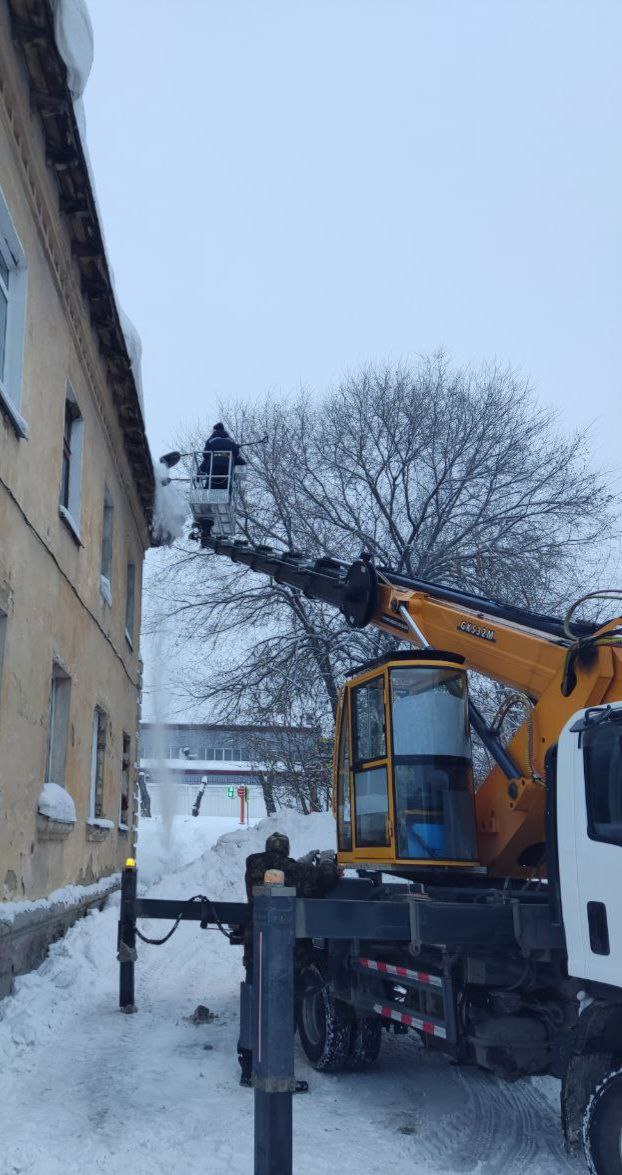 В Кемерове продолжается работа по очистке кровель зданий от снега и наледи