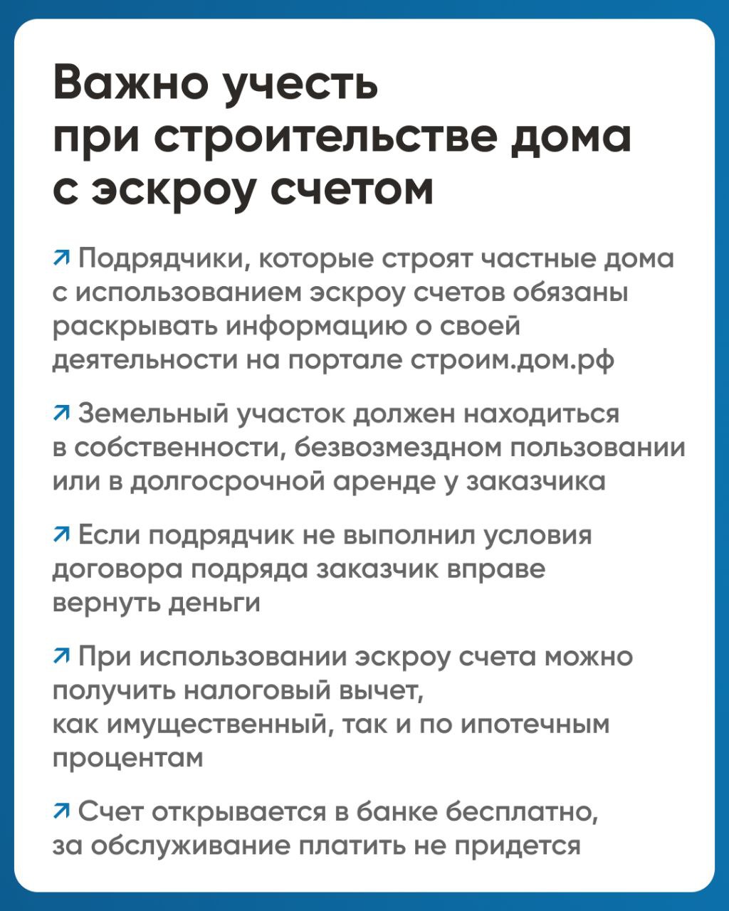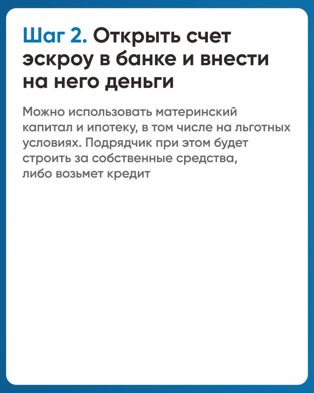 Это дополнительная защита финансов заказчика при заключении договоров подряда. Деньги будут храниться на специальном счете банка до полного окончания строительства вашего дома.