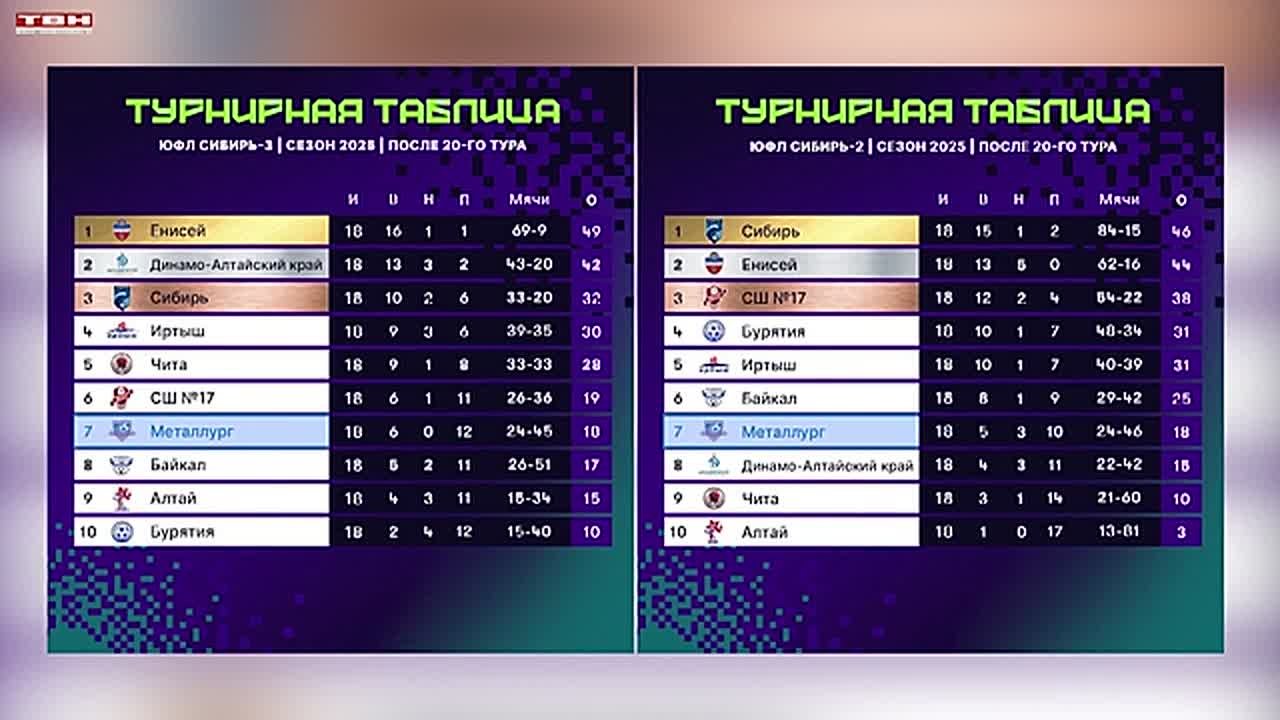 Новокузнецкие команды завершили выступление в чемпионате Юношеской футбольной лиги. Заключительные игры сезона воспитанники спортивной школы «Металлург» провели в Красноярске. «Металлург-2010» встречался с «Енисеем», досрочно гарантировавшим себе первое место в турнире. Новокузнечане на игру вышли с хорошим настроем и играли с соперником на равных. Единственная разница между командами – реализация голевых моментов. Красноярцы на кураже от чемпионства свои шансы один за одним использовали. А подопечные Александра Сурочкина то, что создали, воплотить в голы не смогли. В итоге «Металлург» потерпел поражение с крупным счётом 0:4.
