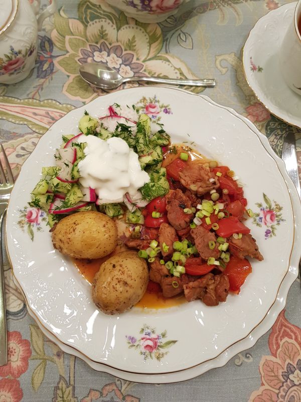 Сделать вечер теплым и уютным можно с помощью простого и сытного домашнего ужина. Сегодня на столе: ароматная тушёная свинина, запечённый до золотистой корочки картофель и летний свежий салат. Этот обед не только порадует вкусом, но и создаст атмосферу праздника в кругу семьи и друзей.