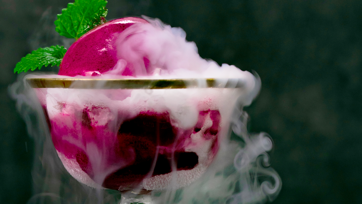 В отличие от газообразного состояния, жидкий азот — это охлажденная до экстремально низких температур субстанция, которая замораживает продукты за считанные секунды. Это происходит благодаря тому, что жидкий азот поддерживает слои замерзания только на поверхности, сохраняя внутреннюю текстуру ингредиентов. Таким образом, блюда не теряют своего аромата и вкуса, как это обычно бывает при традиционной заморозке.