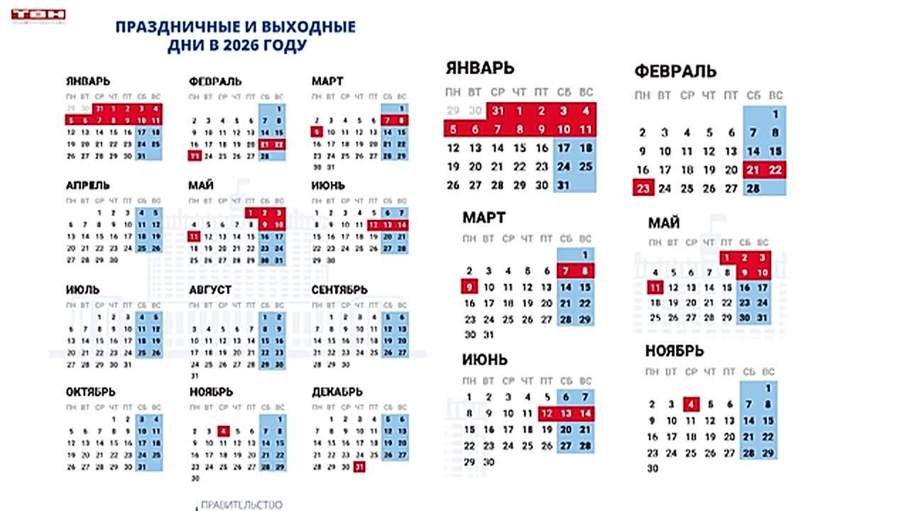 В следующем году у россиян не будет четырехдневных выходных. Минтруд опубликовал календарь праздничных дней на 2026 год. Новогодние каникулы продлятся 12 дней до 11 января включительно. А дальше по 3 дня отдыха выпадает на Международный женский день, включая понедельник 9 марта. День защитника Отечества также захватывает понедельник. Два трехдневных выходных будет в мае, с 1 по 3 число и с 9 по 11. Еще три выходных дня будут в июне на День России с 12 по 14 число. День народного единства выпадает на среду, и он будет выходным днем. Ну и четверг 31 декабря также помечен красным цветом в календаре. Отметим, что в 2026 году не будет ни одной шестидневной рабочей недели.