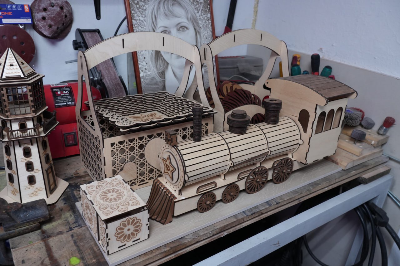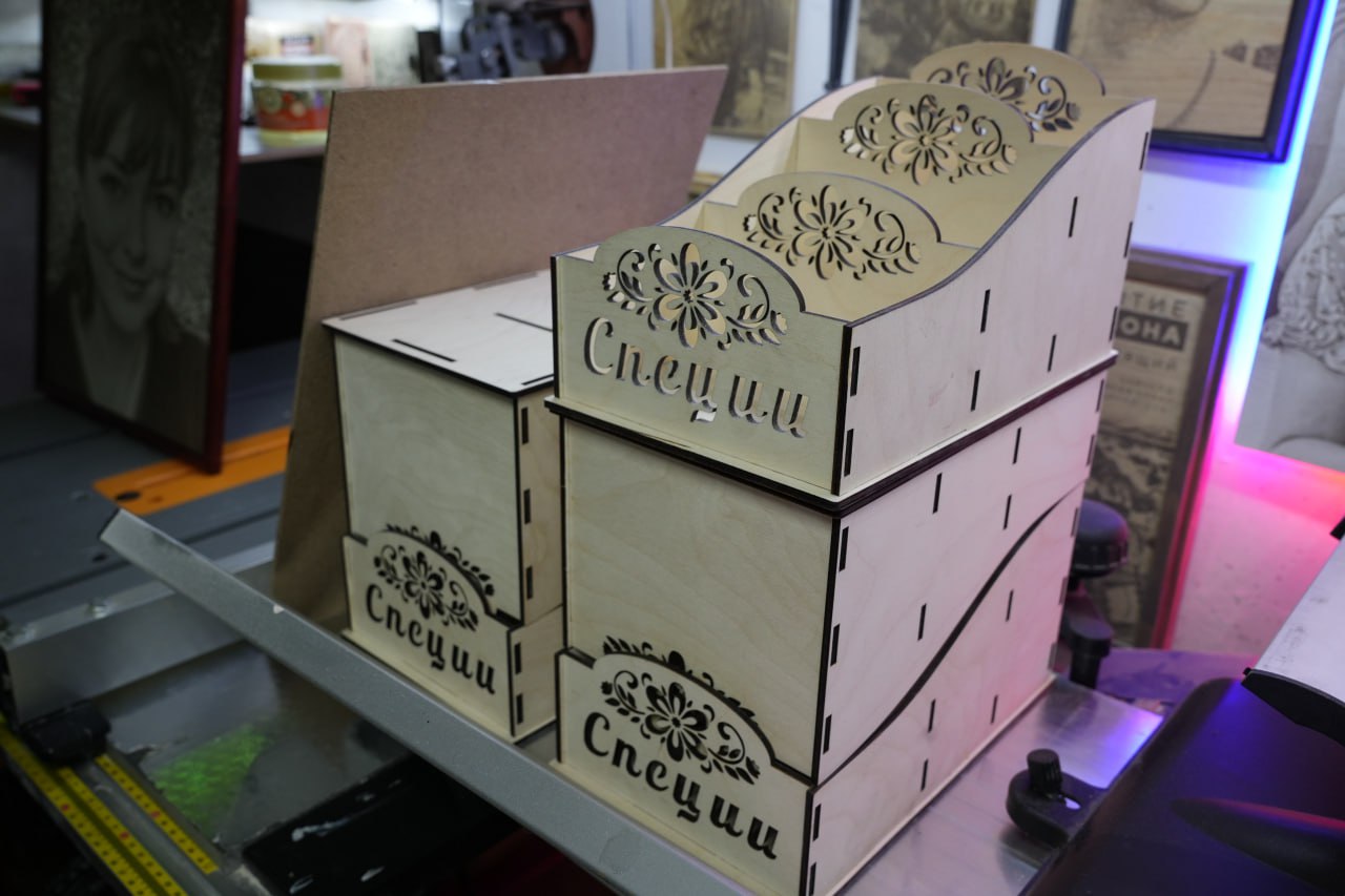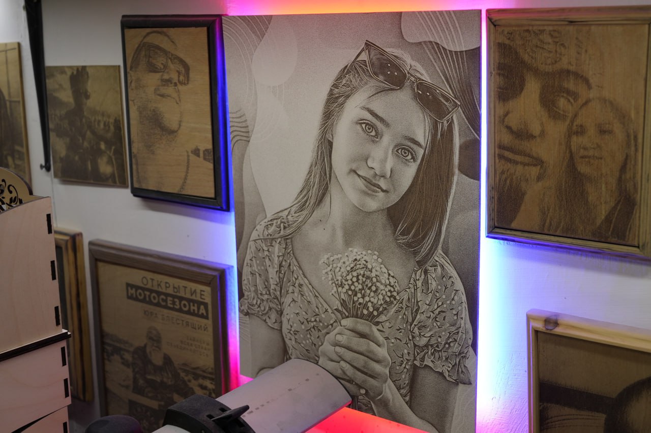 Год спустя – освоено производство самых популярных товаров из дерева: неоновые вывески, рекламные таблички, сувениры, разделочные доски, различные ёмкости. Среди крупных заказов - полки для обуви с гравировкой, а среди самых популярных – короба для автозвука и портреты из дерева, которые охотно приобретают для подарков. Следующий этап – расширение бизнеса, к чему и стремится сейчас получатель господдержки.