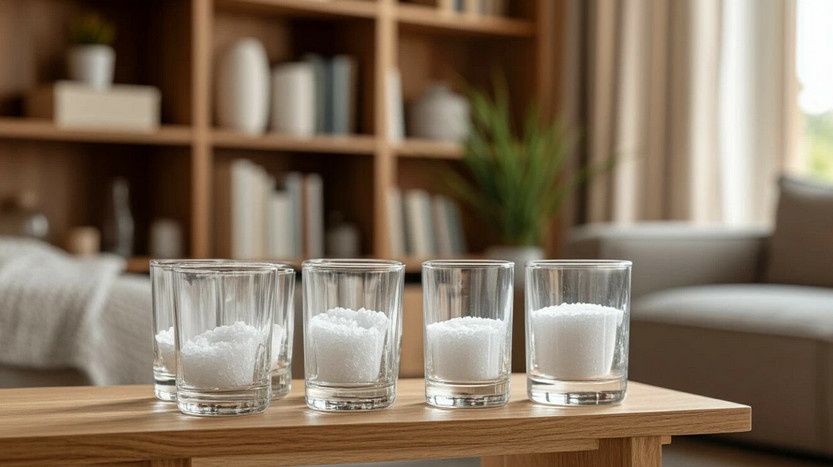 Соль — это доступное и недорогое решение для улучшения климата в доме. За сравнительно небольшие деньги можно существенно повысить комфортнее жителей в помещении. Кроме того, раз в неделю можно добавлять в стаканы ароматические вещества, такие как корки апельсина или капли эфирного масла лаванды, чтобы создать приятную атмосферу. Привычка добавлять в стаканы немного лаванды или масла чайного дерева поможет не только в борьбе с влажностью, но и создаст уютный, расслабляющий аромат в вашем доме.