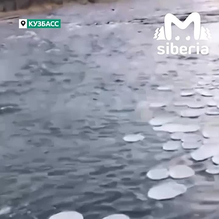 Ледяные блинчики плавают по реке в Кемеровской области.