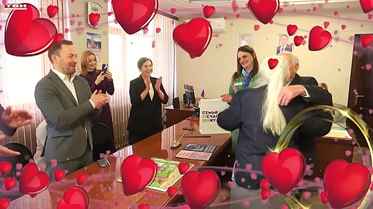 Благодатная свадьба. Это подарки от городских и областных властей, поздравительный адрес от губернатора Кузбасса. Совет ветеранов Новоильинки подарил написанную картину, а ДШИ№55 творческий номер.