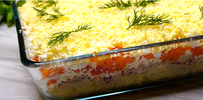 Салат "Мимоза" готов к подаче! Его нежная текстура и яркий вкус несомненно создадут атмосферу уюта и тепла на вашем праздничном столе. Этот рецепт — не просто набор ингредиентов, а часть семейной традиции и любви, воплощенная в каждом слое.