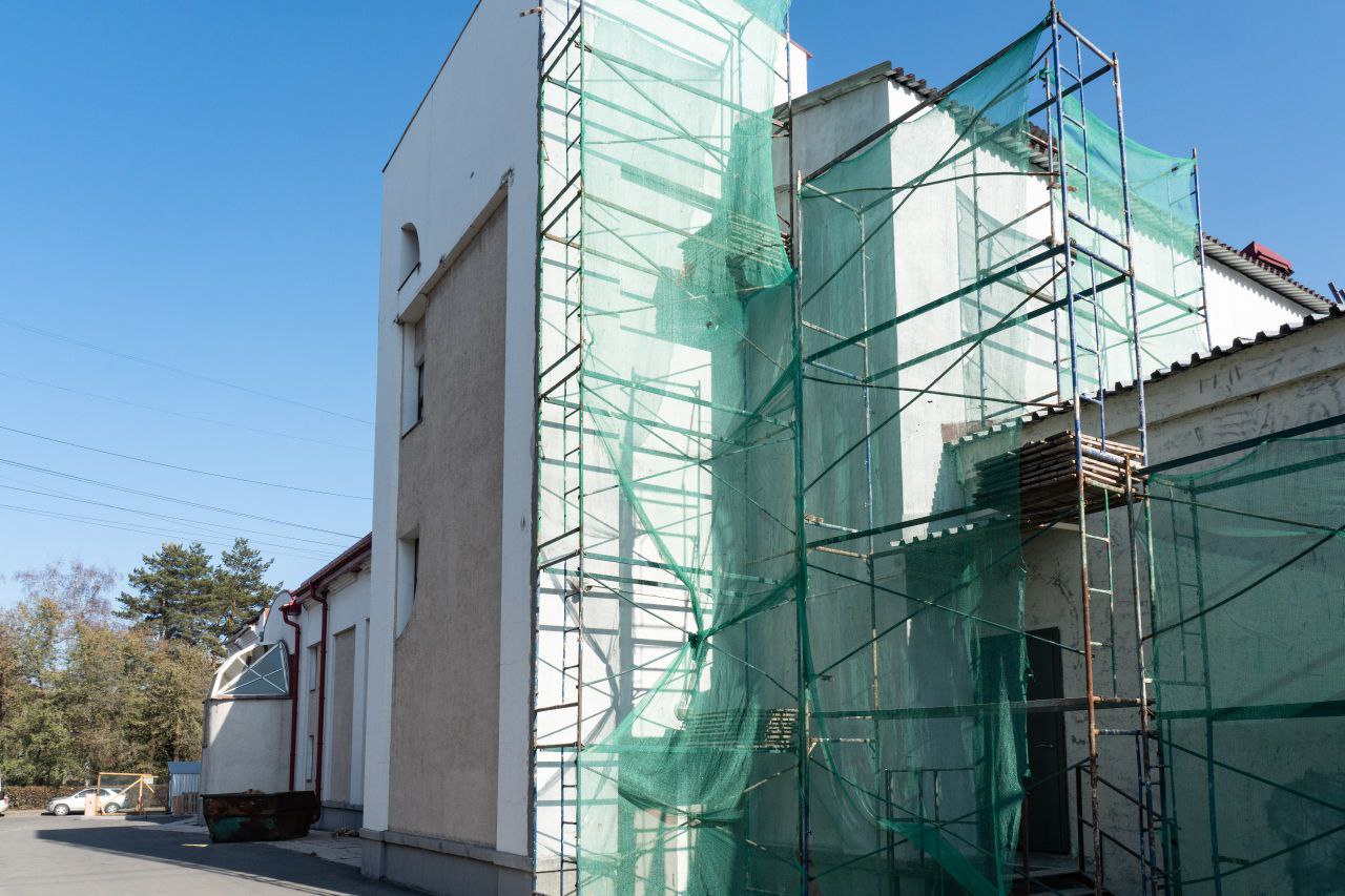 Фасадные работы ведутся на обратной стороне здания. С лицевой стороны обновление планируют сделать в следующем году.