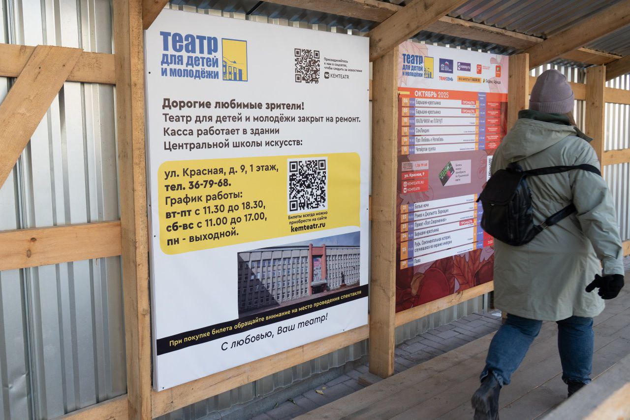 На время ремонта театр продолжает активно работать и радовать своих зрителей. Сегодня начинаются гастроли наших артистов в Нижневартовске. А уже 21 октября они выйдут на сцену в Кемерове. Сейчас основные показы спектаклей проходят на сцене Центральной детской школы искусств (ул. Красная, 9). Здесь же работает касса (тел. 36-79-68). Билеты на большинство спектаклей можно приобрести по Пушкинской карте.