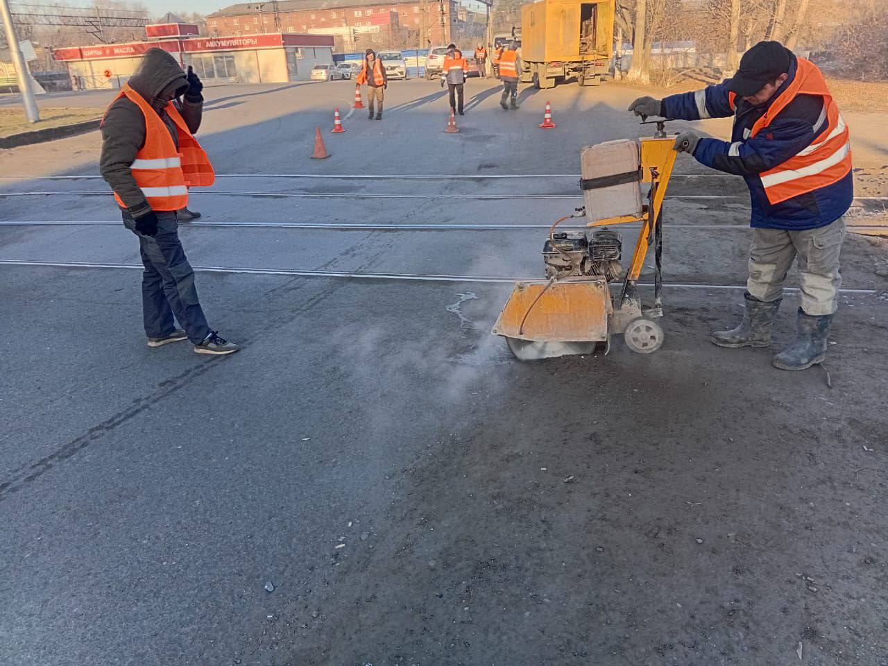 В Кемерове ремонтируют переезд через трамвайные пути на улице Тельмана